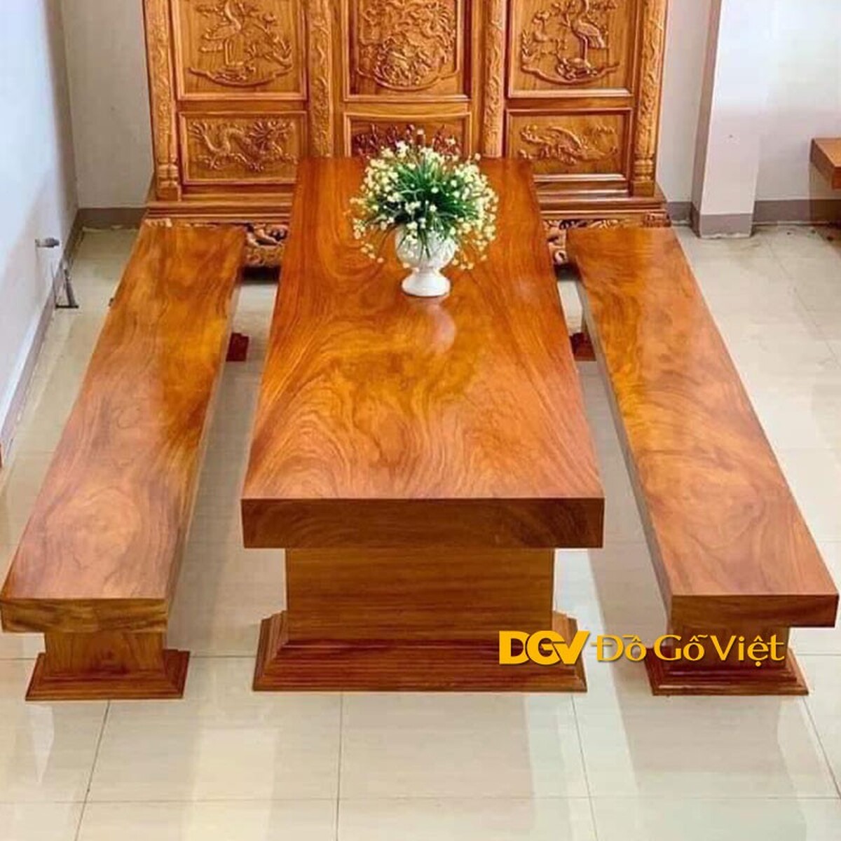 Bộ Bàn Ăn Cổ Điển Mặt Gỗ Gõ Đỏ Nguyên Khối 100%