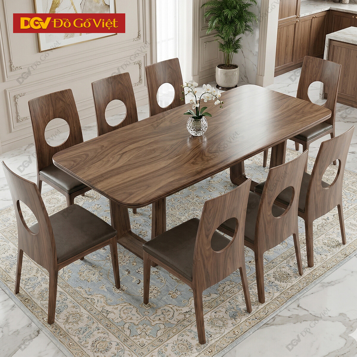 Bộ Bàn Ăn Gia Đình Gỗ Óc Chó Tự Nhiên Đẳng Cấp Lưng Tròn