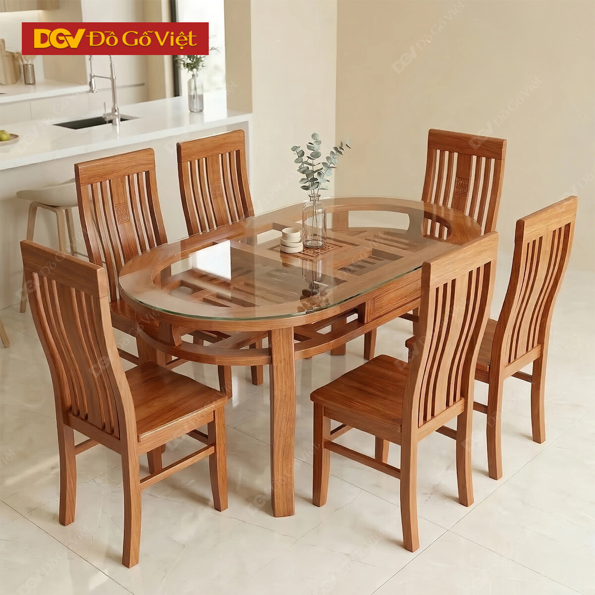 Bàn Ăn Gỗ Xoan Đào Oval 1m6 6 Ghế
