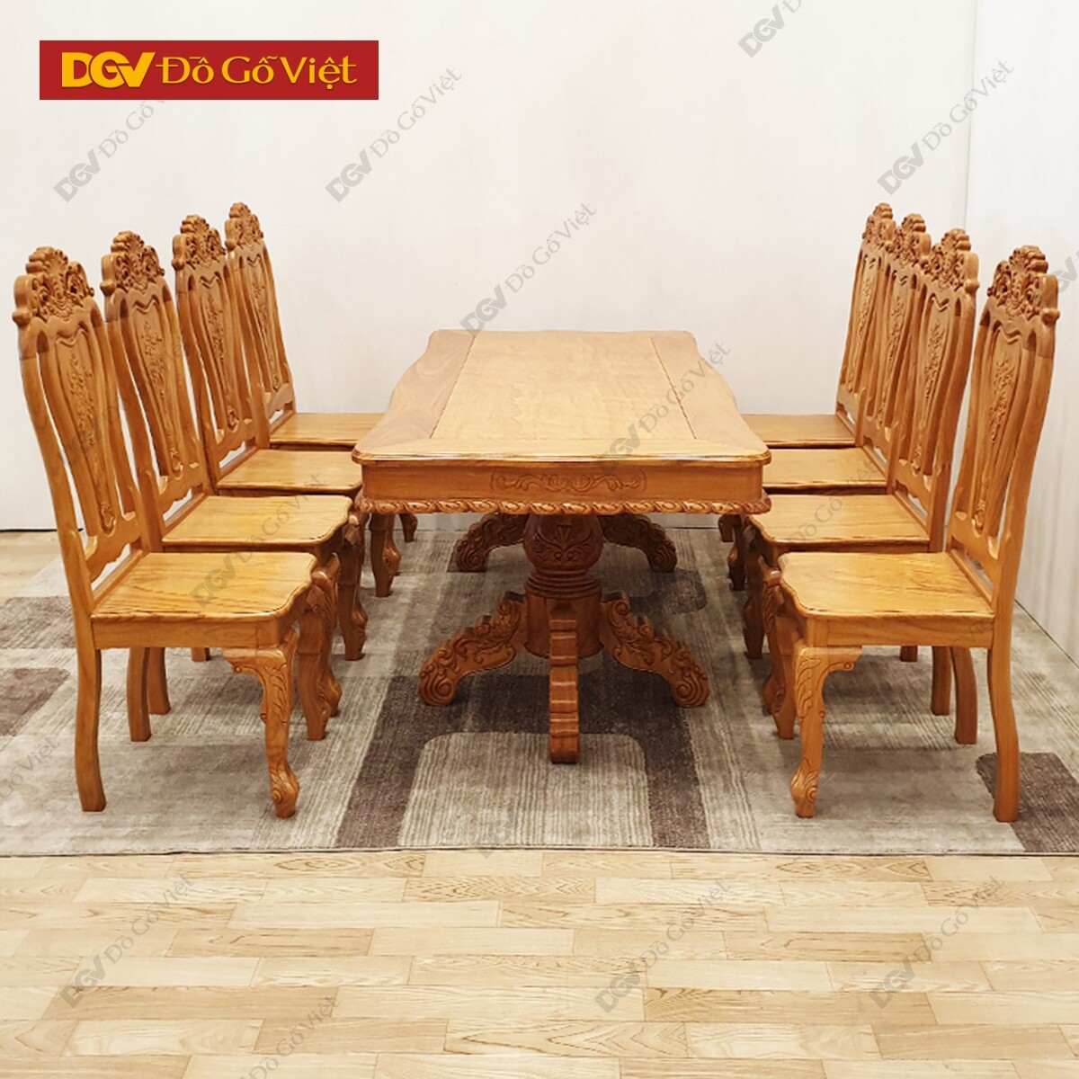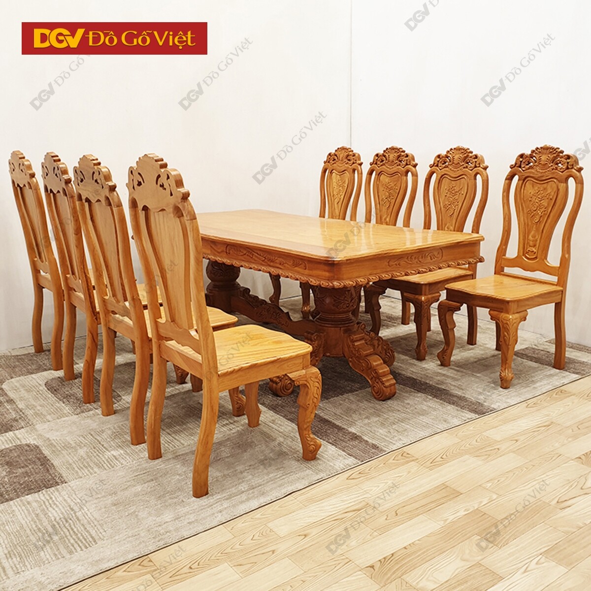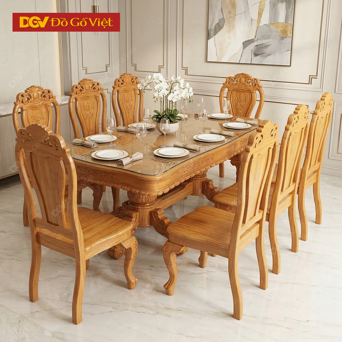 Bộ bàn ghế ăn giá rẻ là mảnh ghép hoàn hảo cho các căn phòng theo phong cách cổ điển sang trọng. Từng đường nét sản phẩm đều được “cân đo đong đếm” để đảm bảo độ chính xác đến từng mm. Toàn bộ họa tiết, hoa văn trang trí đều được chạy CNC tiêu chuẩn, hoàn thiện tinh xảo để đạt tính thẩm mỹ tốt nhất.