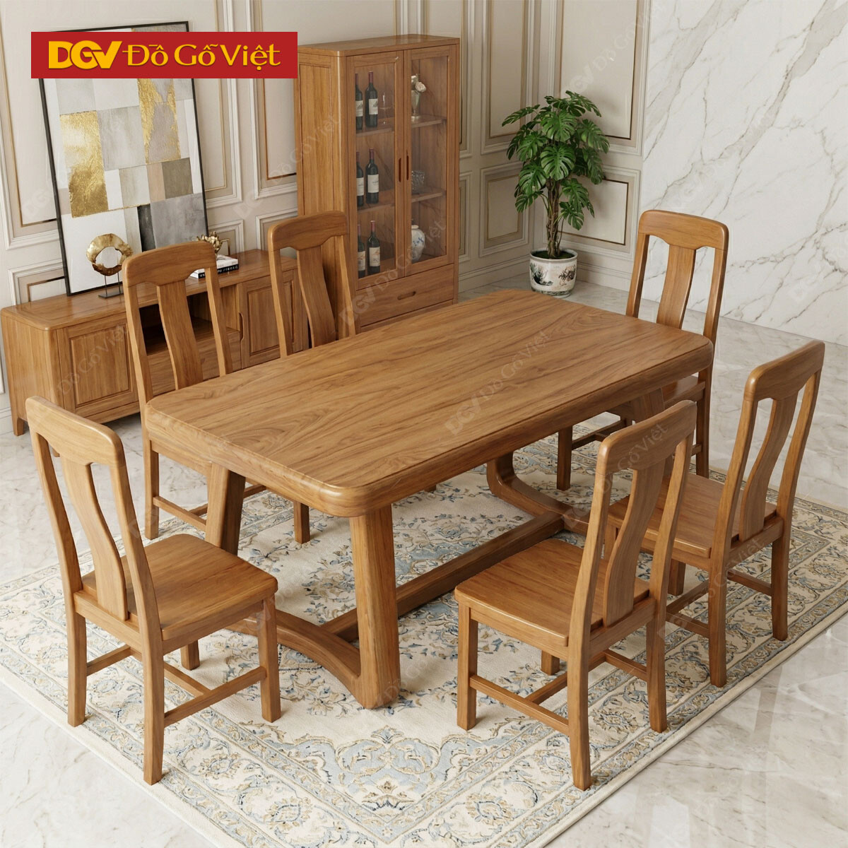 Bàn Ăn Căm Xe Mặt Gõ Chữ Nhật Cong 1m9 8 Ghế