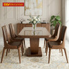 Bộ Bàn Ăn Gỗ Óc Chó 6 Ghế Sang Trọng Trụ Giữa Ghế Bọc Da Êm