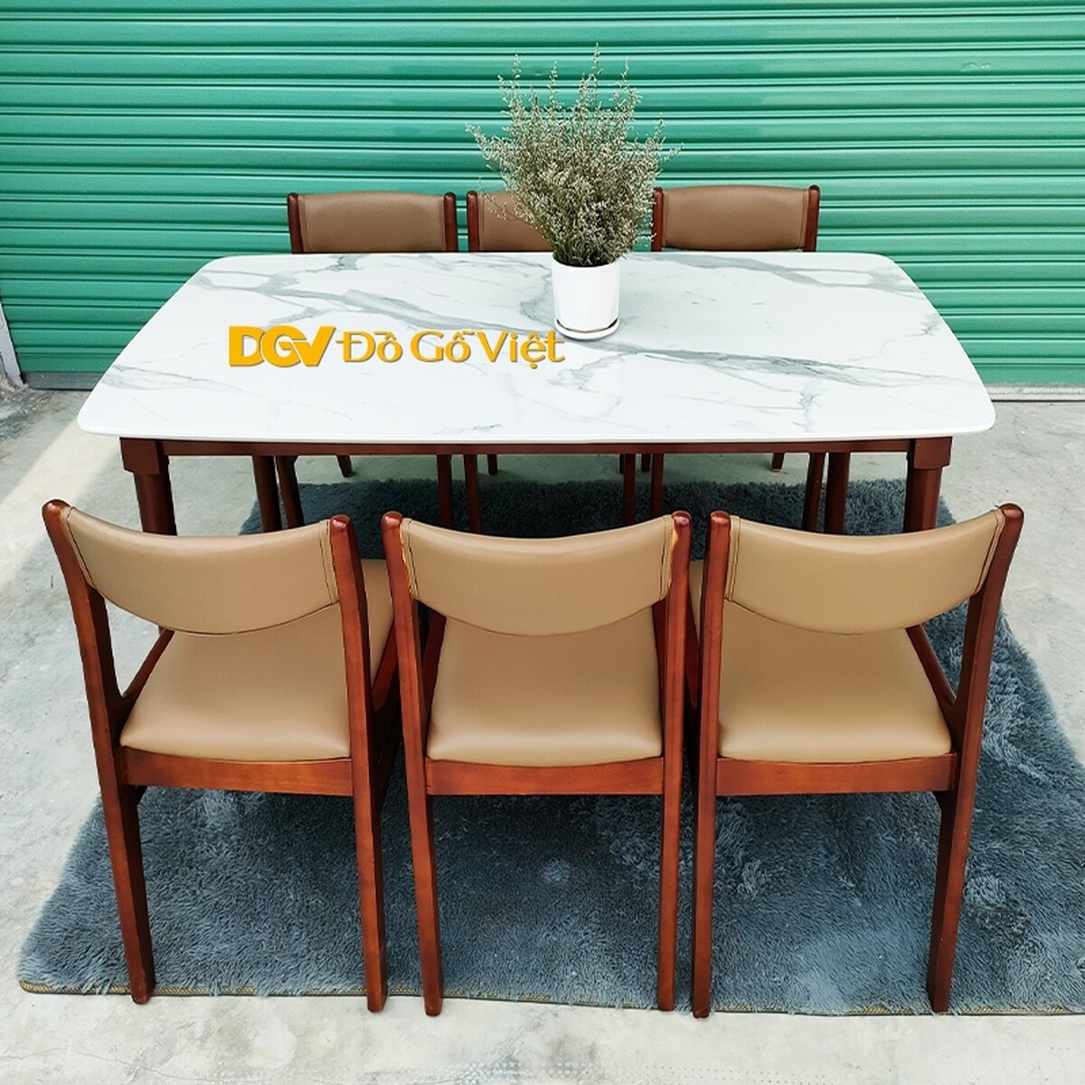 Bộ Bàn Ăn Hiện Đại Mặt Giả Đá 6 Ghế Màu Nâu Mặt Nệm