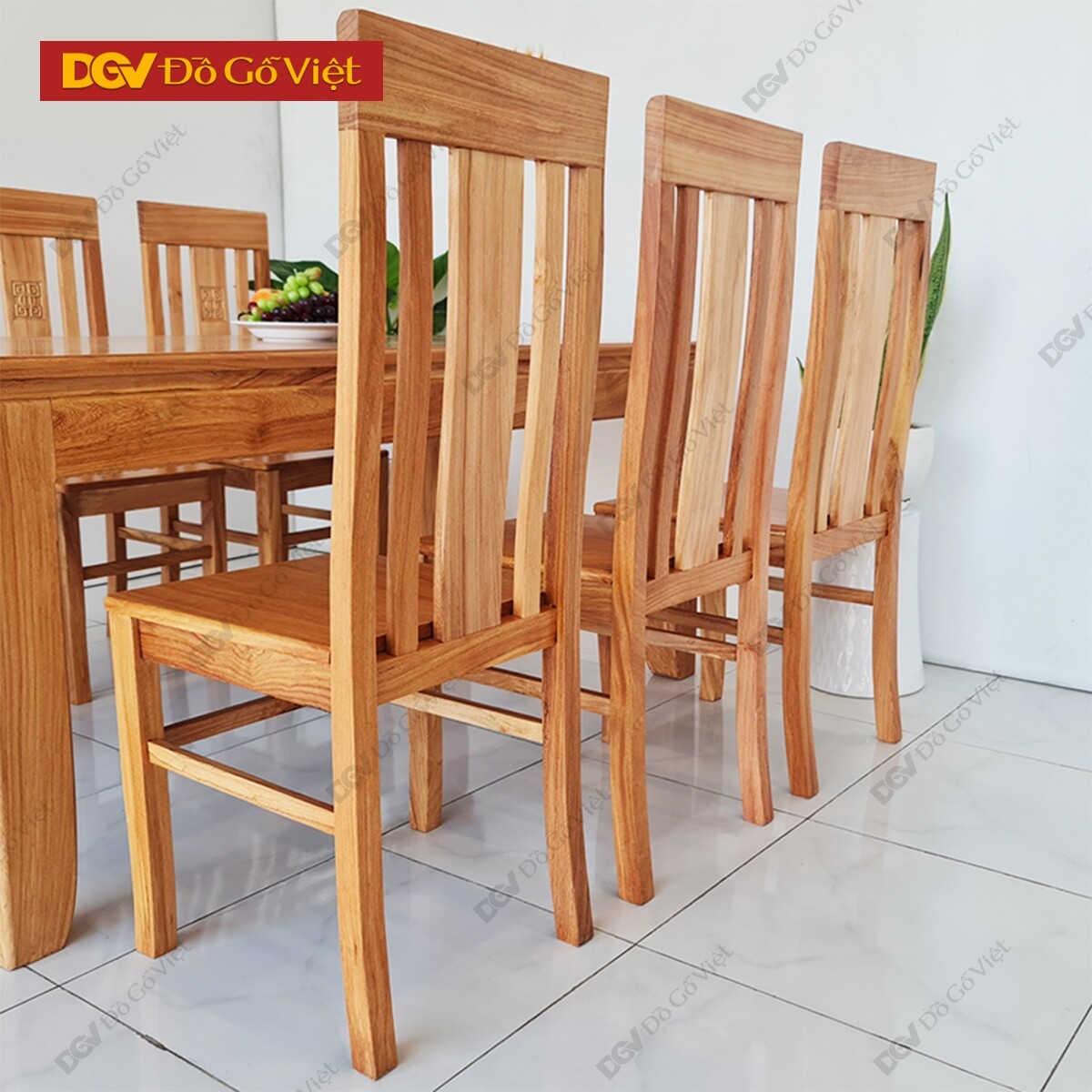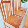 • Ghế ngồi bộ bàn ăn gỗ gõ đỏ dạng nan đơn giản gồm 5 nan ghế nhỏ, lưng ghế chạm hoa văn chữ Triện tinh tế tạo tính cân bằng thẩm mỹ cho sản phẩm. Lưng ghế thiết kế hơi cong nhẹ xuôi đều theo lưng người sử dụng, mang lại sự thoải mái tốt cho người ngồi dù phải sử dụng trong suốt thời gian dài.
