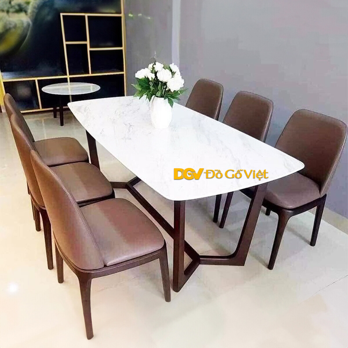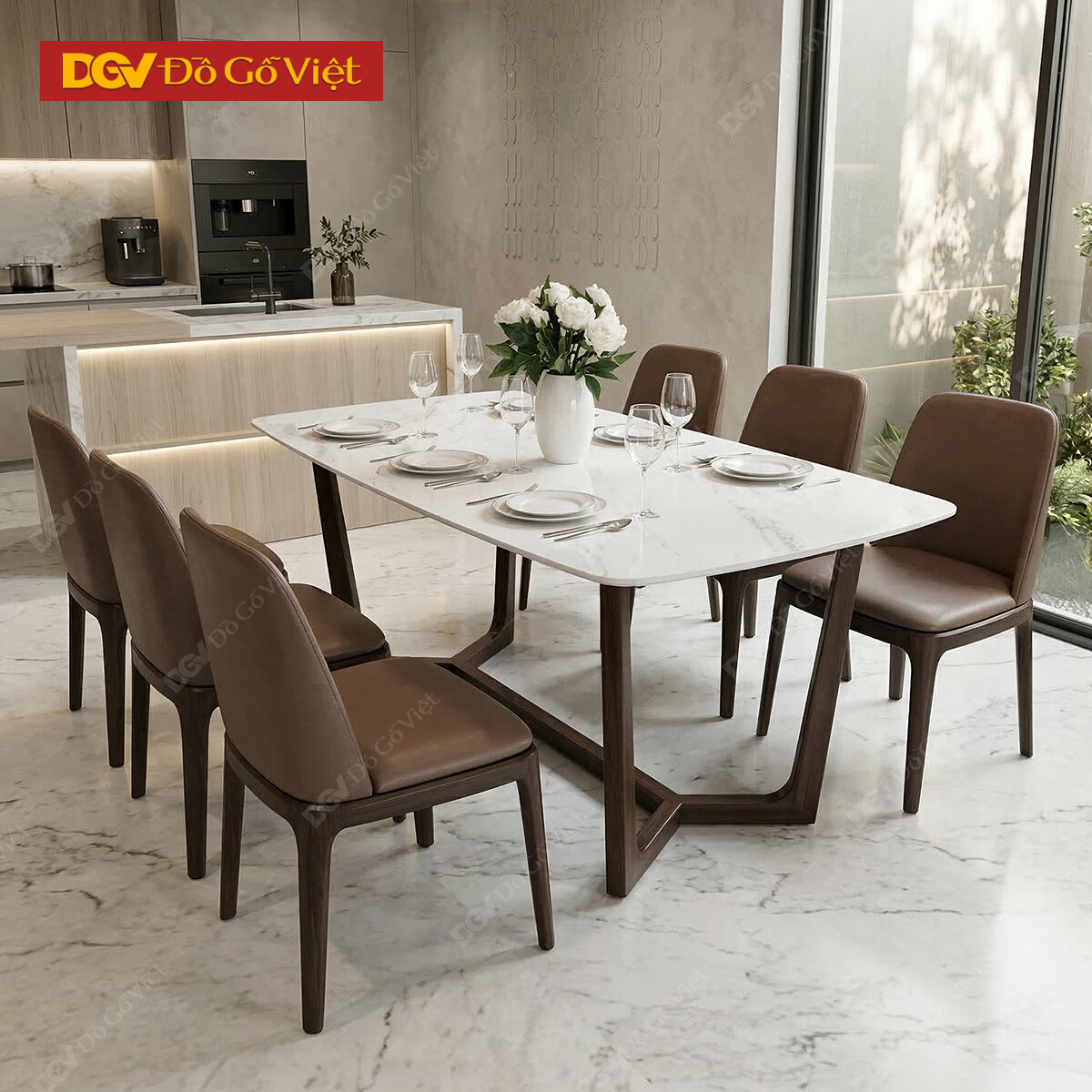 Bộ Bàn Ăn Mặt Đá Hiện Đại Gỗ Tự Nhiên Đẹp