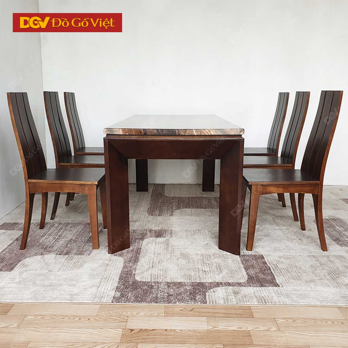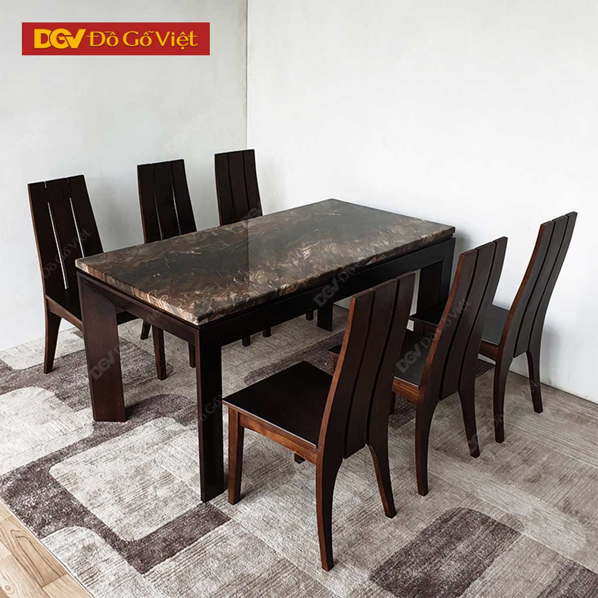 Bộ Bàn Ăn Mặt Đá Sơn Màu Óc Chó Hiện Đại 1m6 6 Ghế Đẹp Giá Rẻ