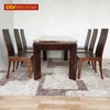 • Bộ bàn ghế ăn 6 ghế với phần mặt bàn làm hình chữ nhật vuông vắn, khung bàn loại 4 chân lớn cực dày và rộng tạo cảm giác bề thế và cứng cáp cho sản phẩm. Mặt đá chữ nhật được mài nhẵn với tông màu nâu đen vẫn thể hiện được phong cách riêng lại không gây nên sự đối chọi màu sắc với phần khung gỗ.