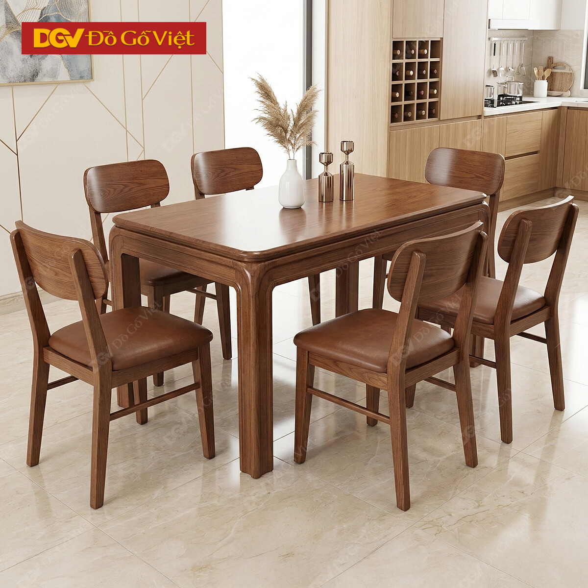 Bộ Bàn Ăn Gỗ Sồi Màu Óc Chó 6 Ghế Mẫu Mới 2026 Đẹp Giá Rẻ