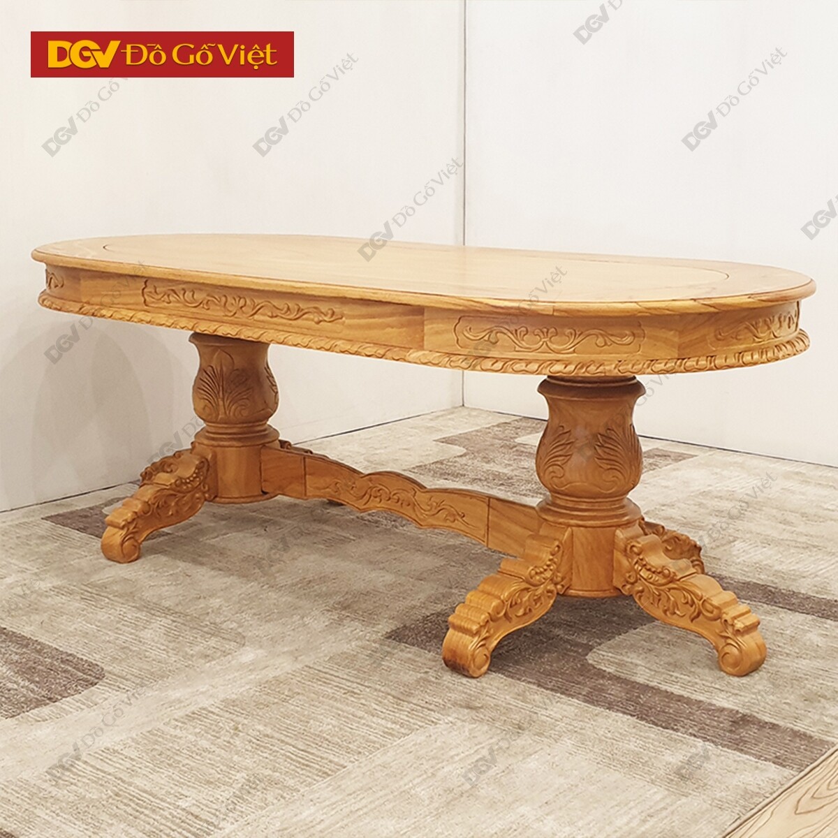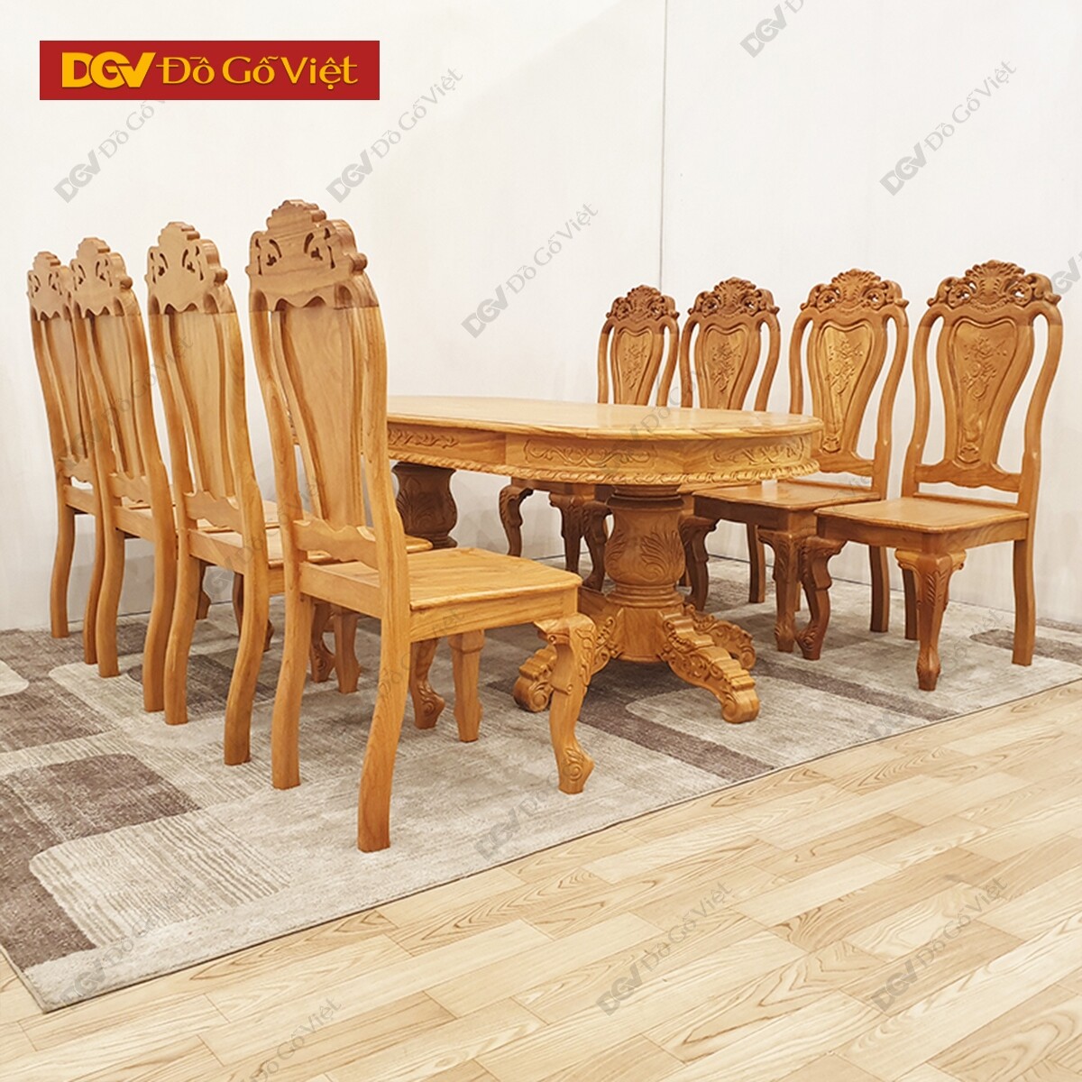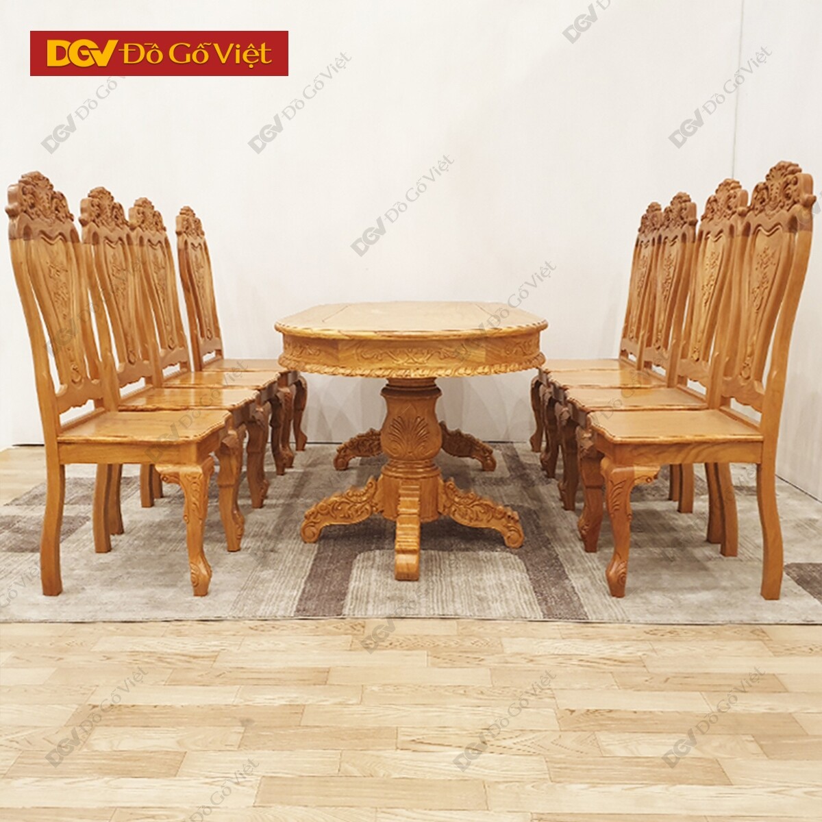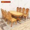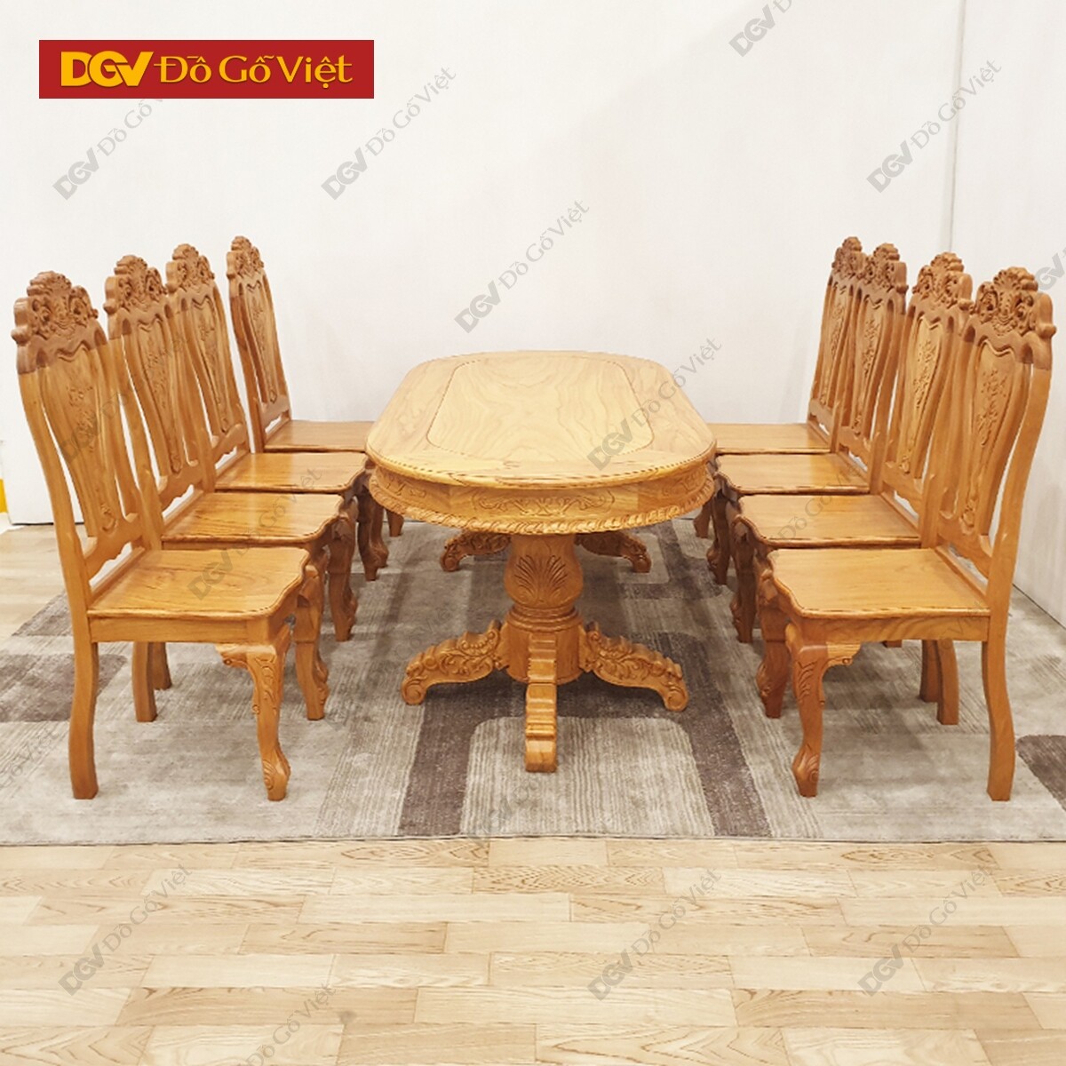Bộ Bàn Ăn Oval Gỗ Gõ Đỏ Chân Trụ 1m9 8 Ghế