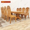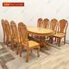 Bàn Ăn Căm Xe Mặt Gõ Chữ Nhật Cong 1m9 8 Ghế