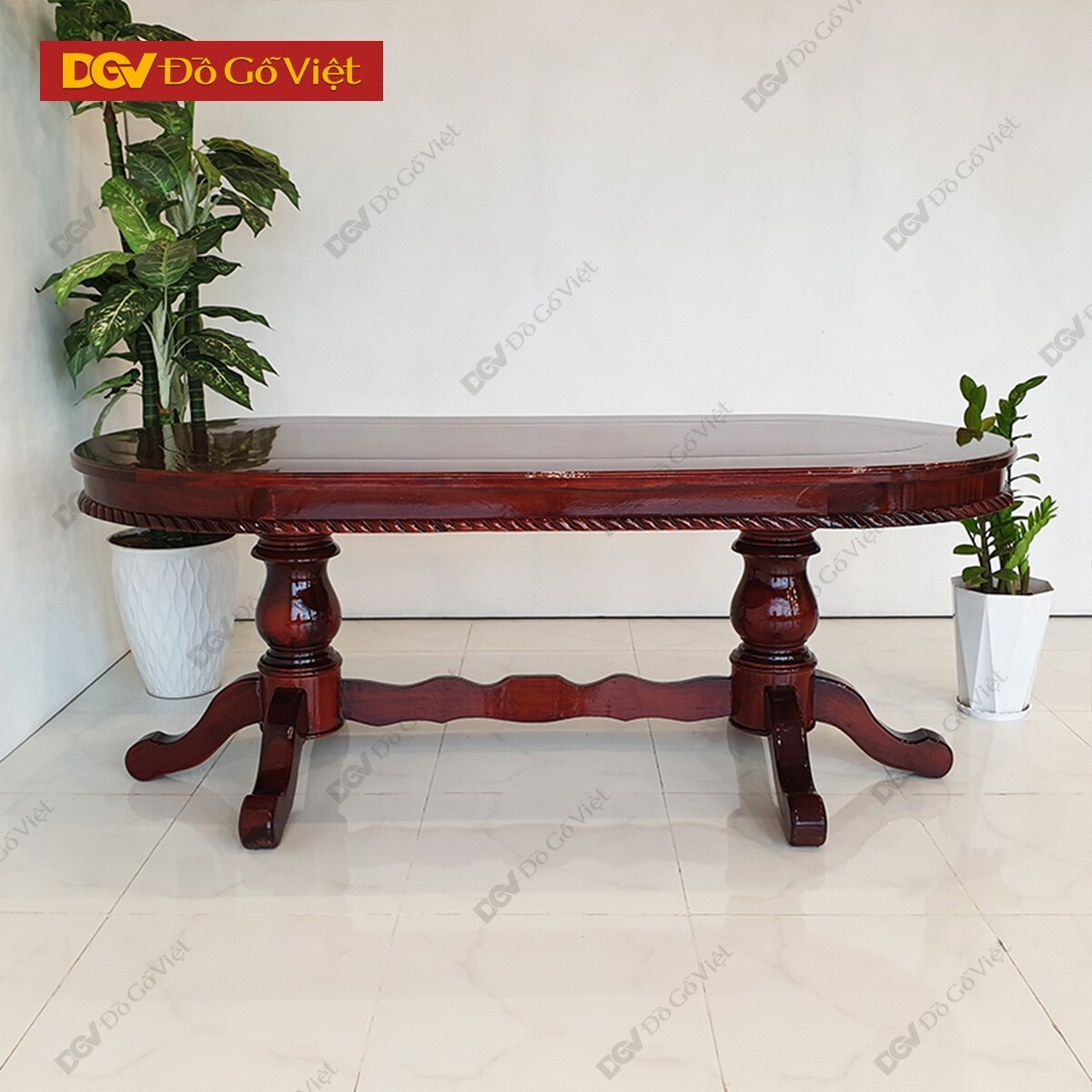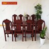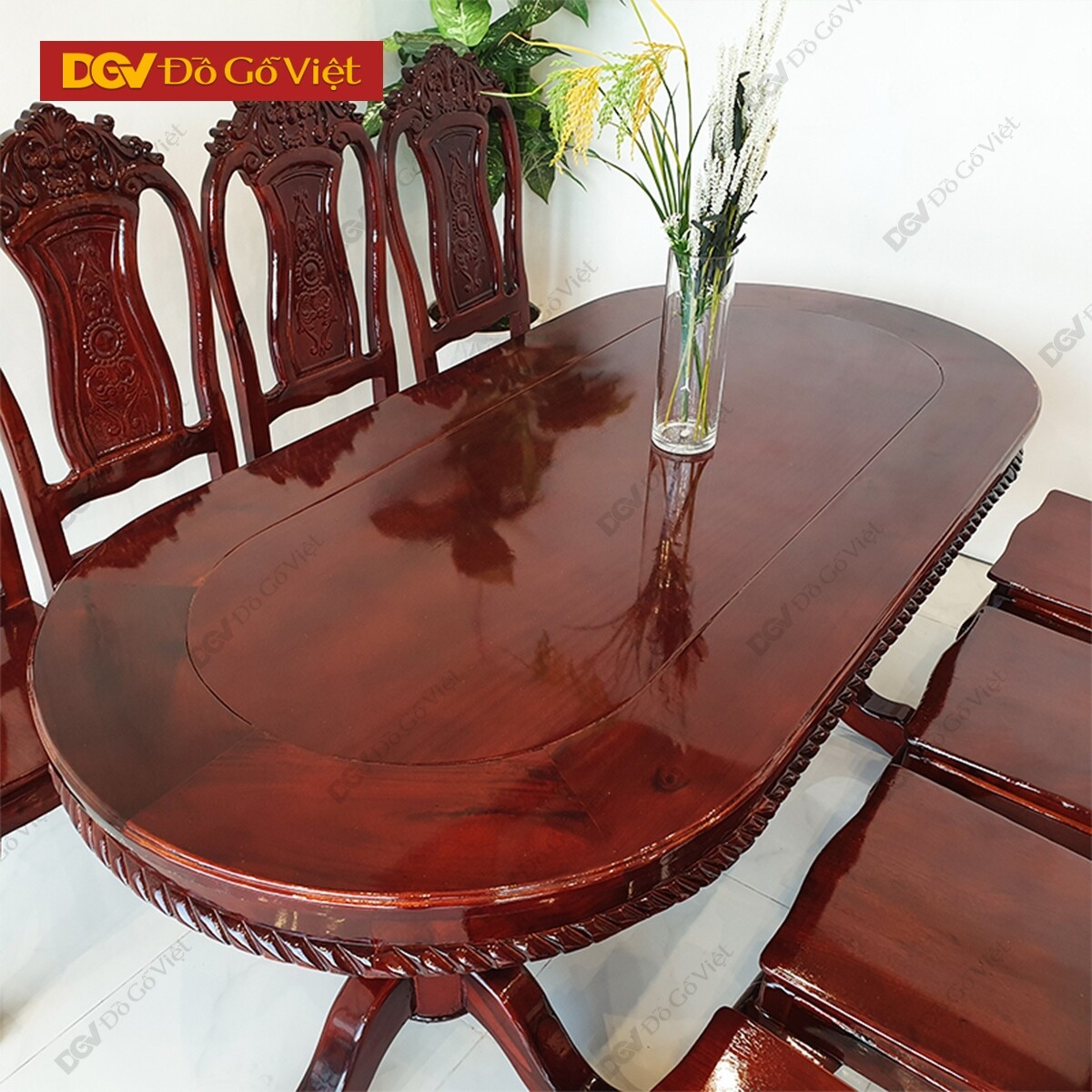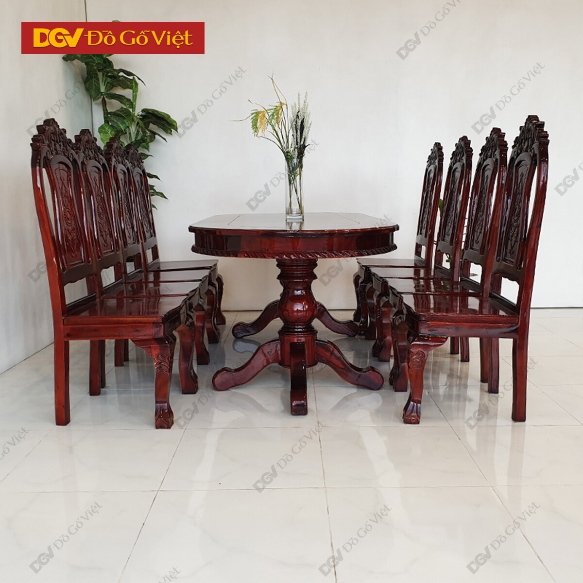 Bộ Bàn Ăn Tràm Mặt Hồng Đào Oval 8 Ghế Chạm Hoa Tây Đẹp