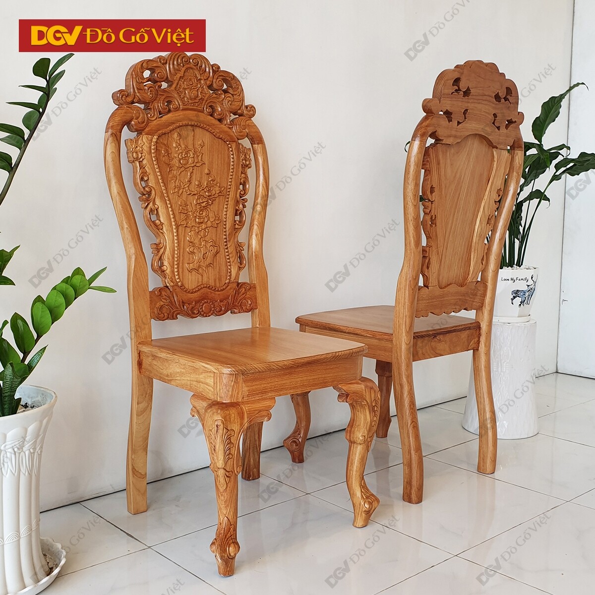 • Ghế ngồi tạo hình theo kiểu chữ U ngược với 2 vai thoải, chân hình chữ S, lưng ghế được làm hơi nghiêng nhẹ để người ngồi có thể tựa lưng thoải mái nhất. Mặt lưng ghế chạm hoa hồng với những đường viền hoa lá bắt mắt.