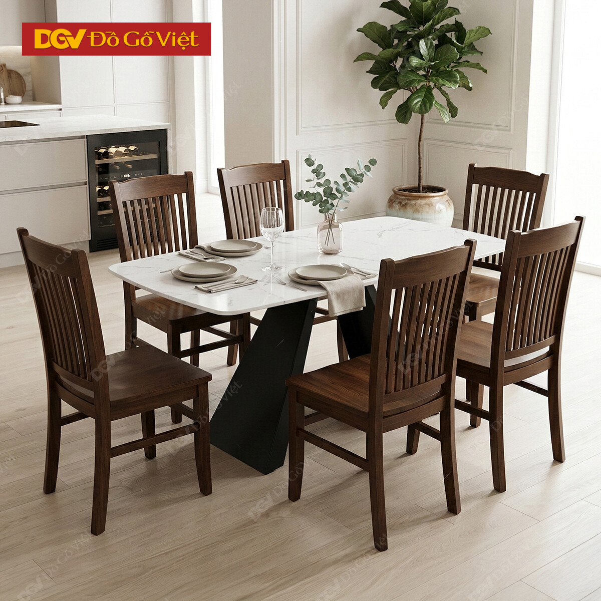 Bộ Bàn Ăn Gỗ Sồi Màu Óc Chó 6 Ghế Mẫu Mới 2026 Đẹp Giá Rẻ