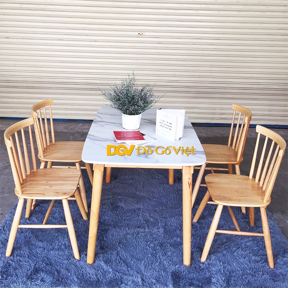 Bàn Ăn Mặt Đá 4 Ghế Gỗ Cao Su Đẹp Giá Rẻ