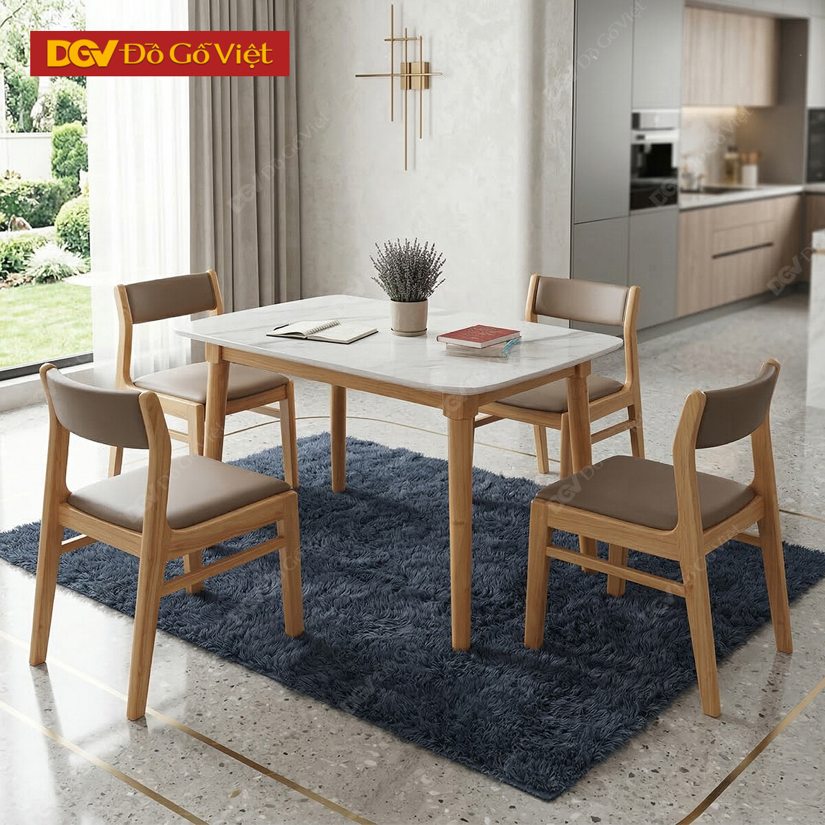 Bàn Ăn Mặt Đá 4 Ghế Gỗ Cao Su Đẹp Giá Rẻ