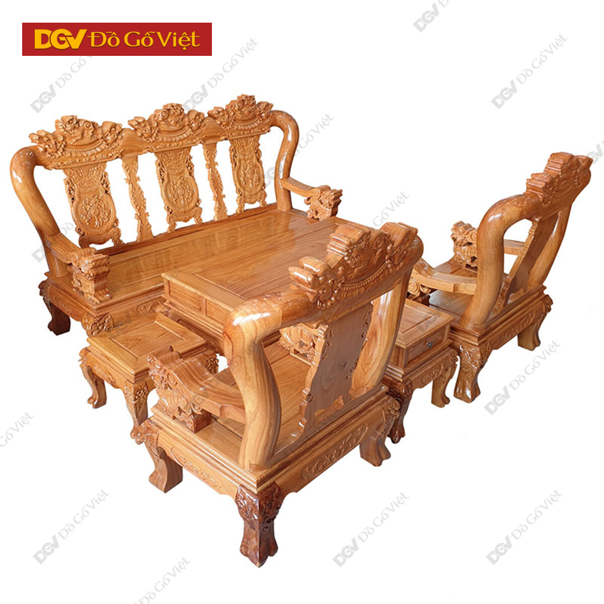 Bàn Ghế Salon Gỗ Gõ Đỏ Chạm Rồng Đỉnh Tay 12 - 6 Món