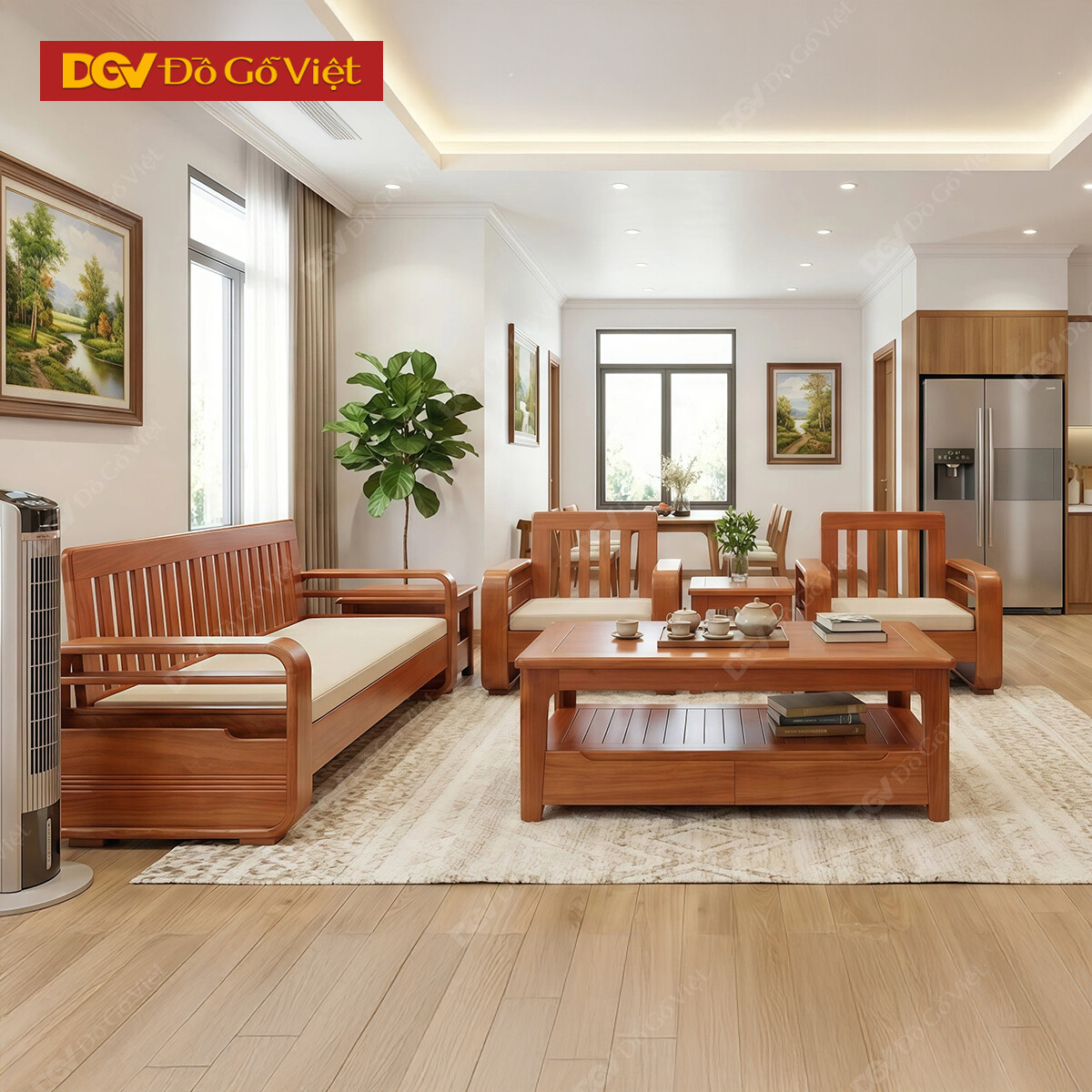 Bộ Bàn Ghế Xoan Đào Tay Cong Cho Phòng Khách Hiện Đại