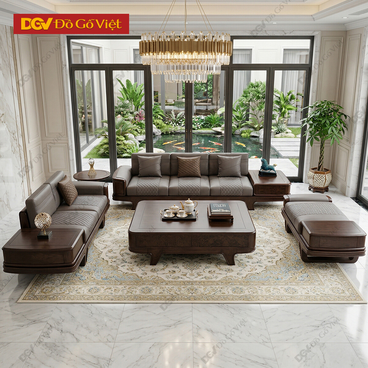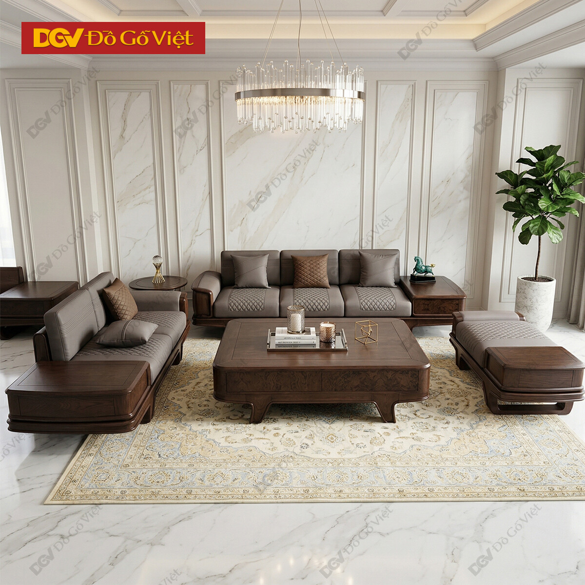 Bộ Sofa Gỗ Óc Chó Phòng Khách Hiện Đại Bo Góc Tinh Tế