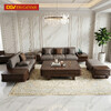 Bộ Ghế Sofa Gỗ Óc Chó 2 Văng Chân Thuyền Đệm Da Sang Trọng