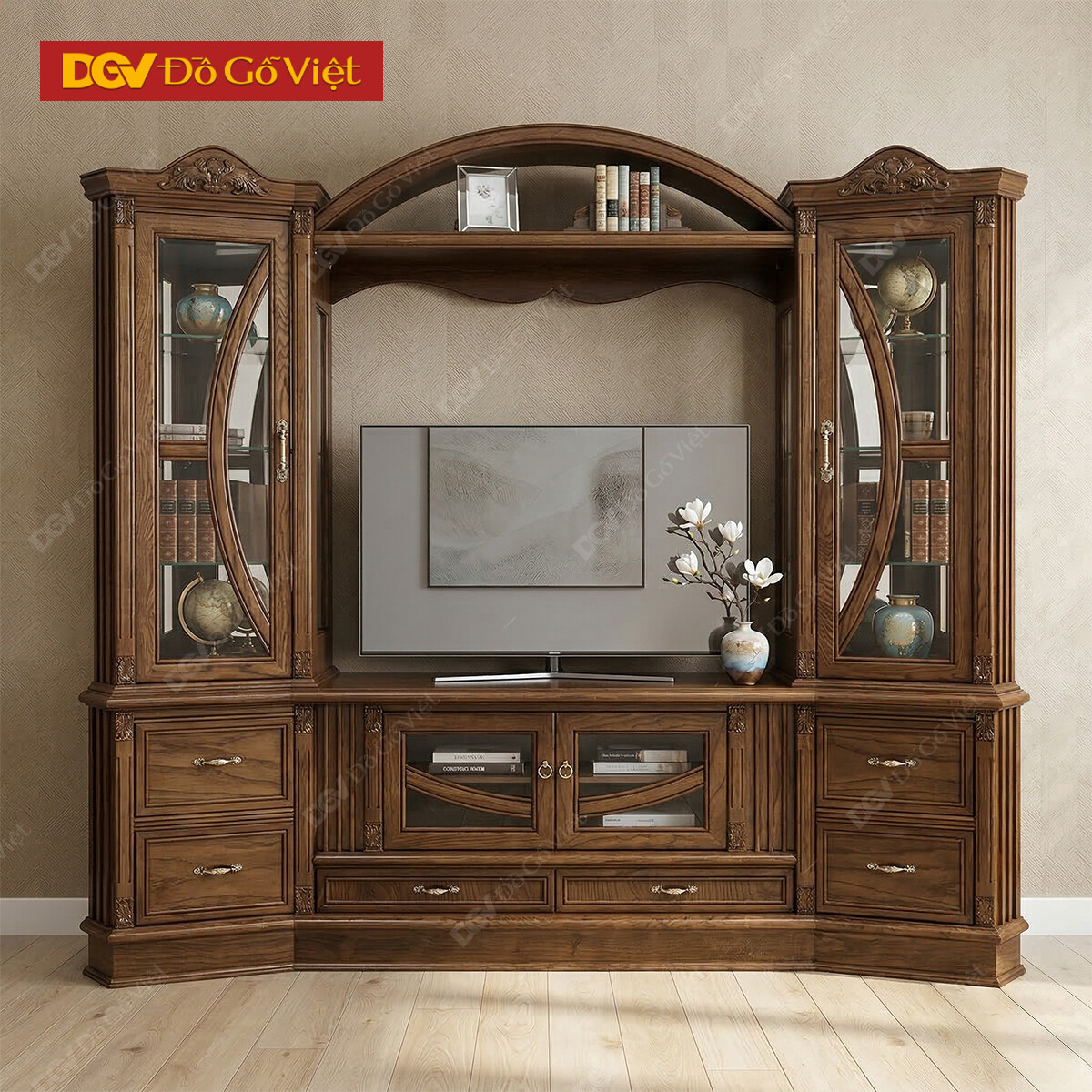 Bộ Kệ Tivi Kết Hợp Tủ Rượu Tròn Cong Gỗ Sồi Nga Sang Bền Đẹp