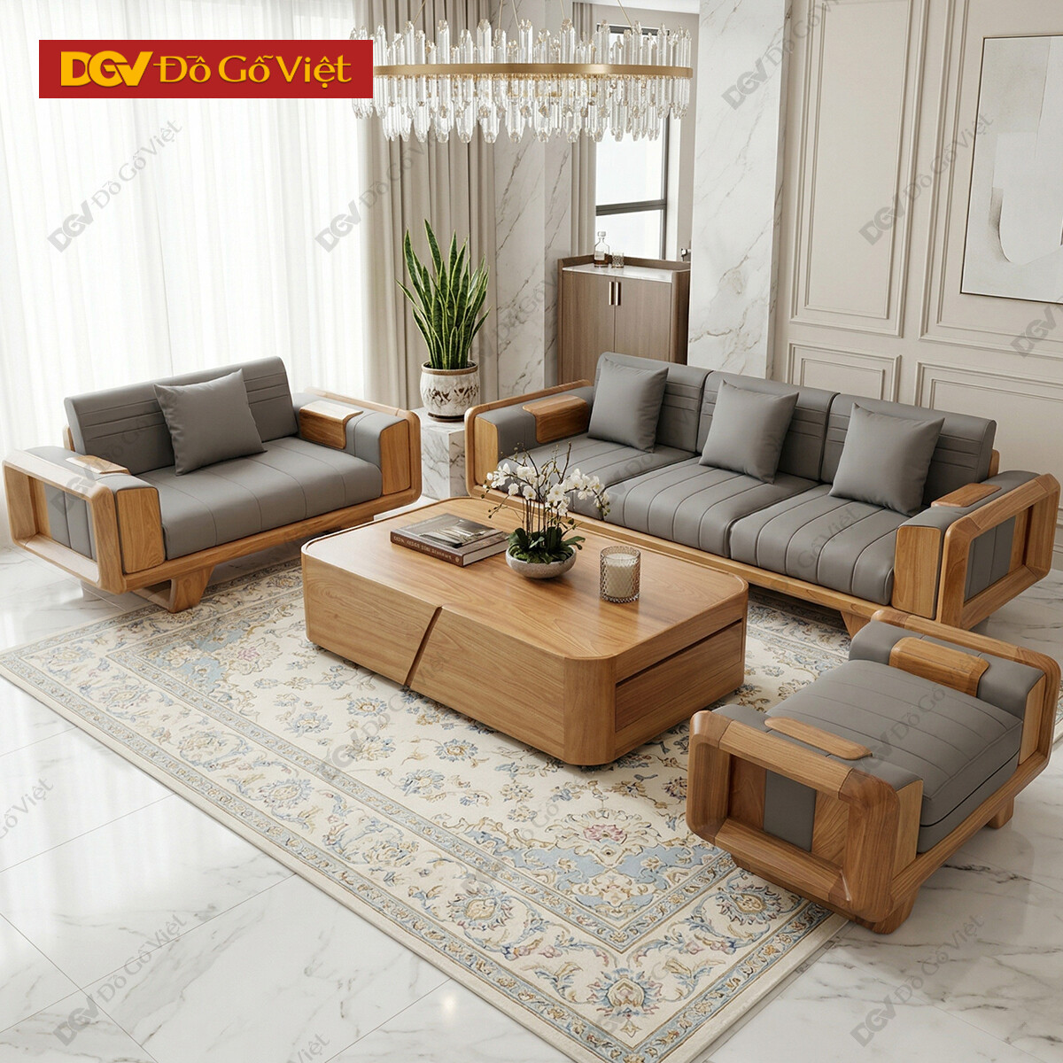 Bộ Sofa 2 Văng Gỗ Gõ Đỏ Hiện Đại Tay Hộp Bọc Nệm Cao Cấp