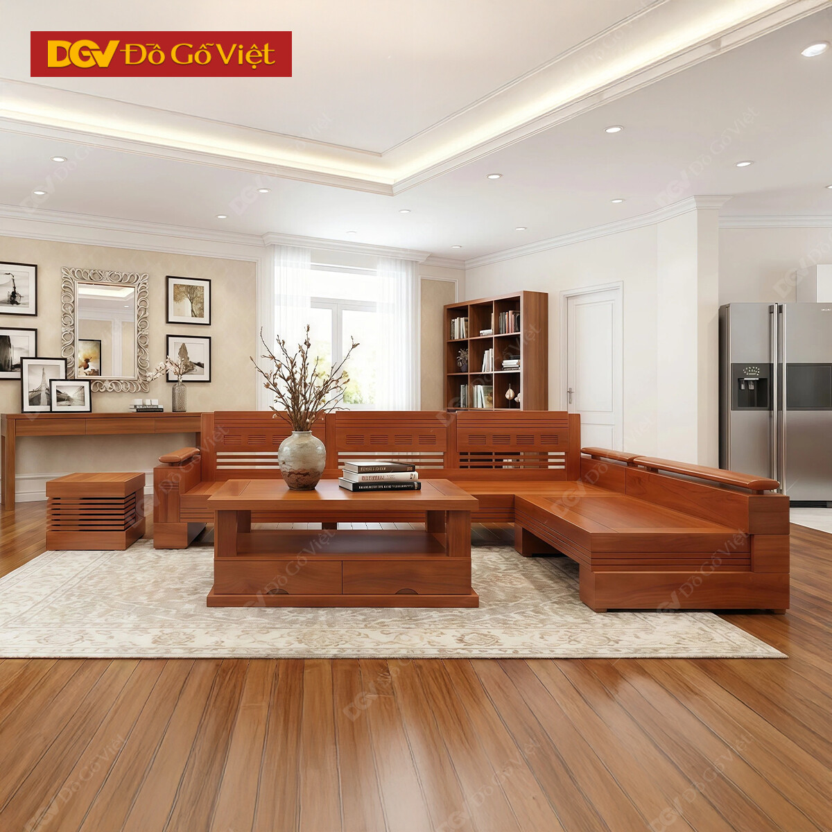 Bộ Sofa Góc Gỗ Xoan Đào Hiện Đại Đep Giá Rẻ