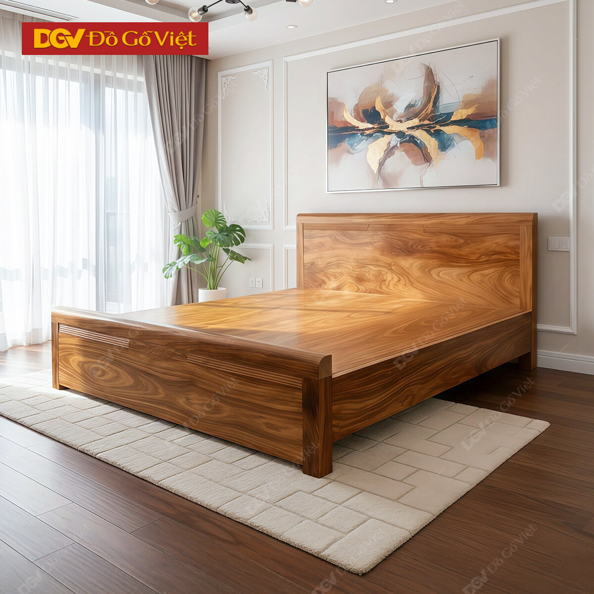 Giường Gỗ Hiện Đại Kiểu Đầu Bằng Chạy Chỉ Đẹp Tinh Tế