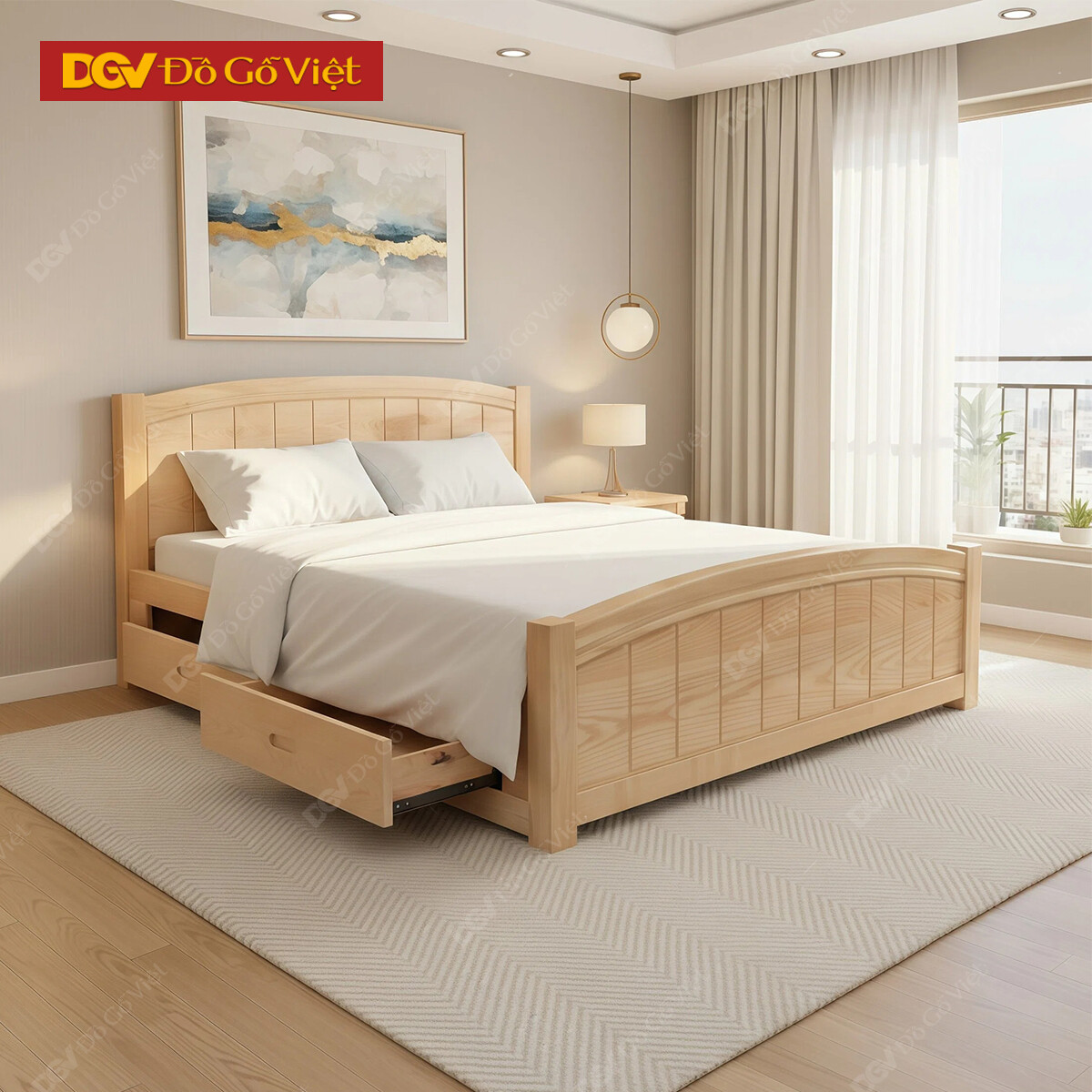 Giường Gỗ Sồi Đẹp Dáng Vòm Kẻ Dọc Hiện Đại Kèm Hộc Kéo