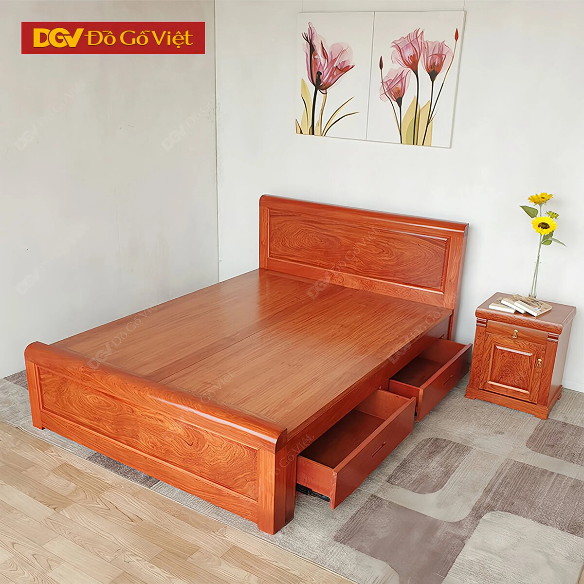 Giường Ngủ 2 Ngăn Kéo Gỗ Tự Nhiên Vân Hương Đá Đẹp Giá Tốt