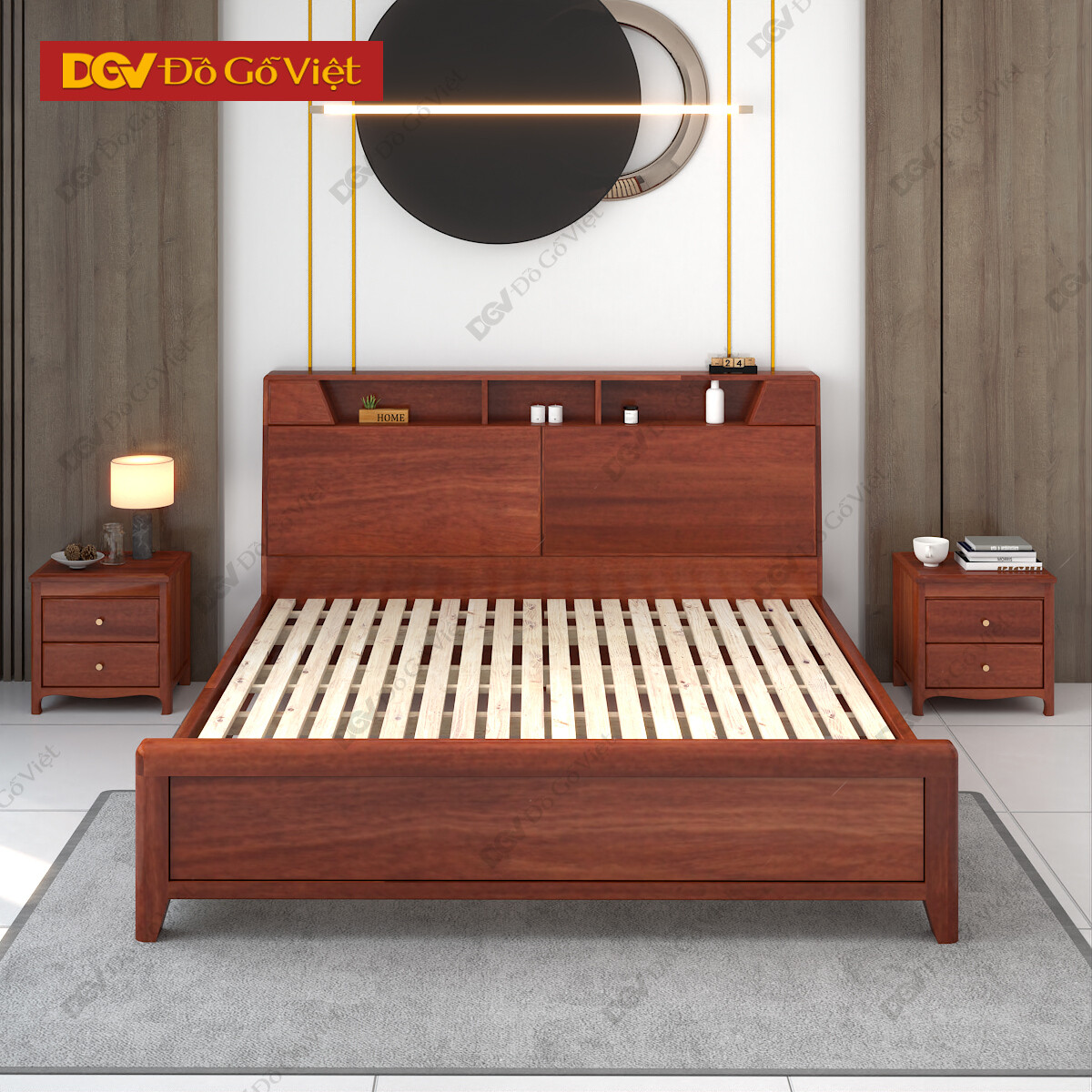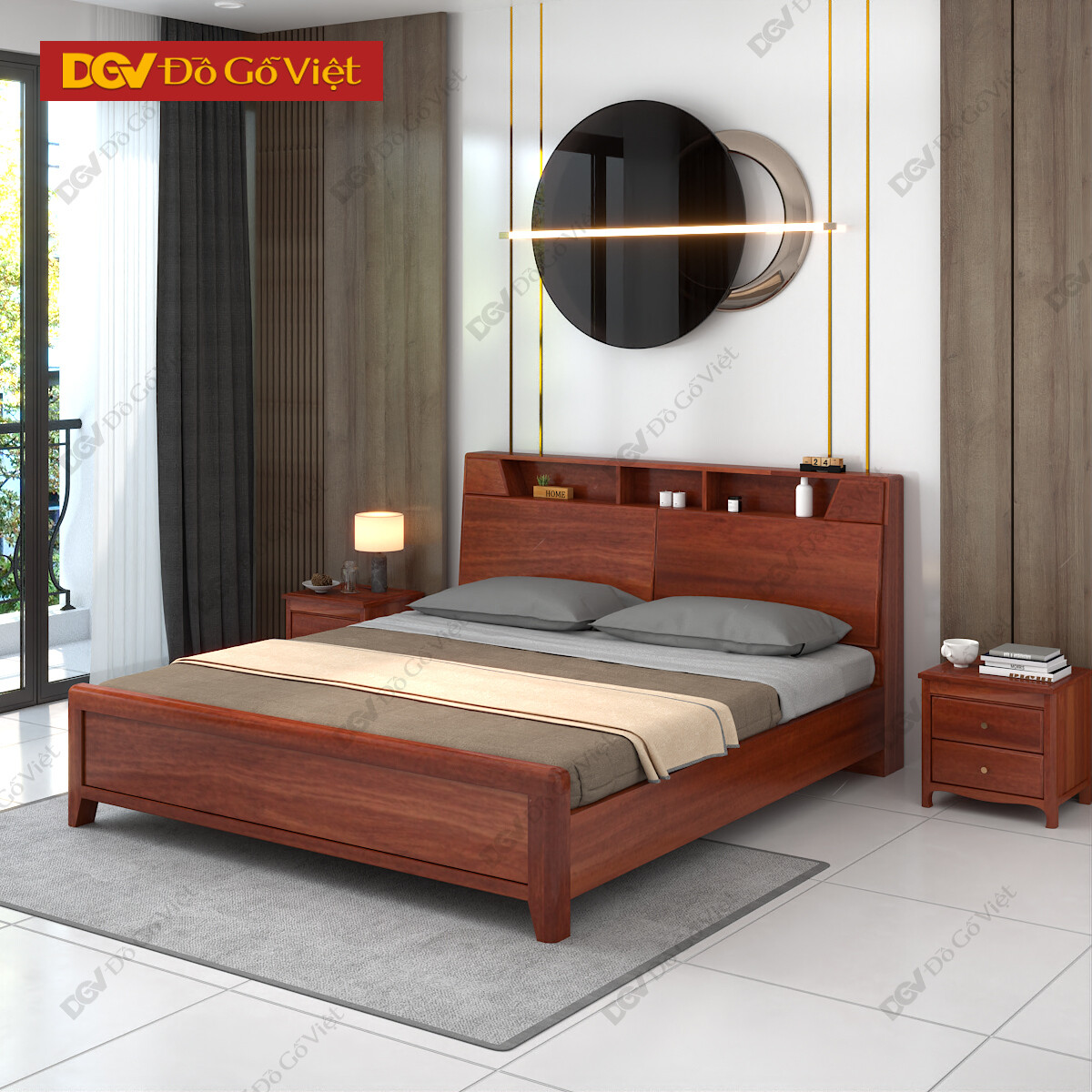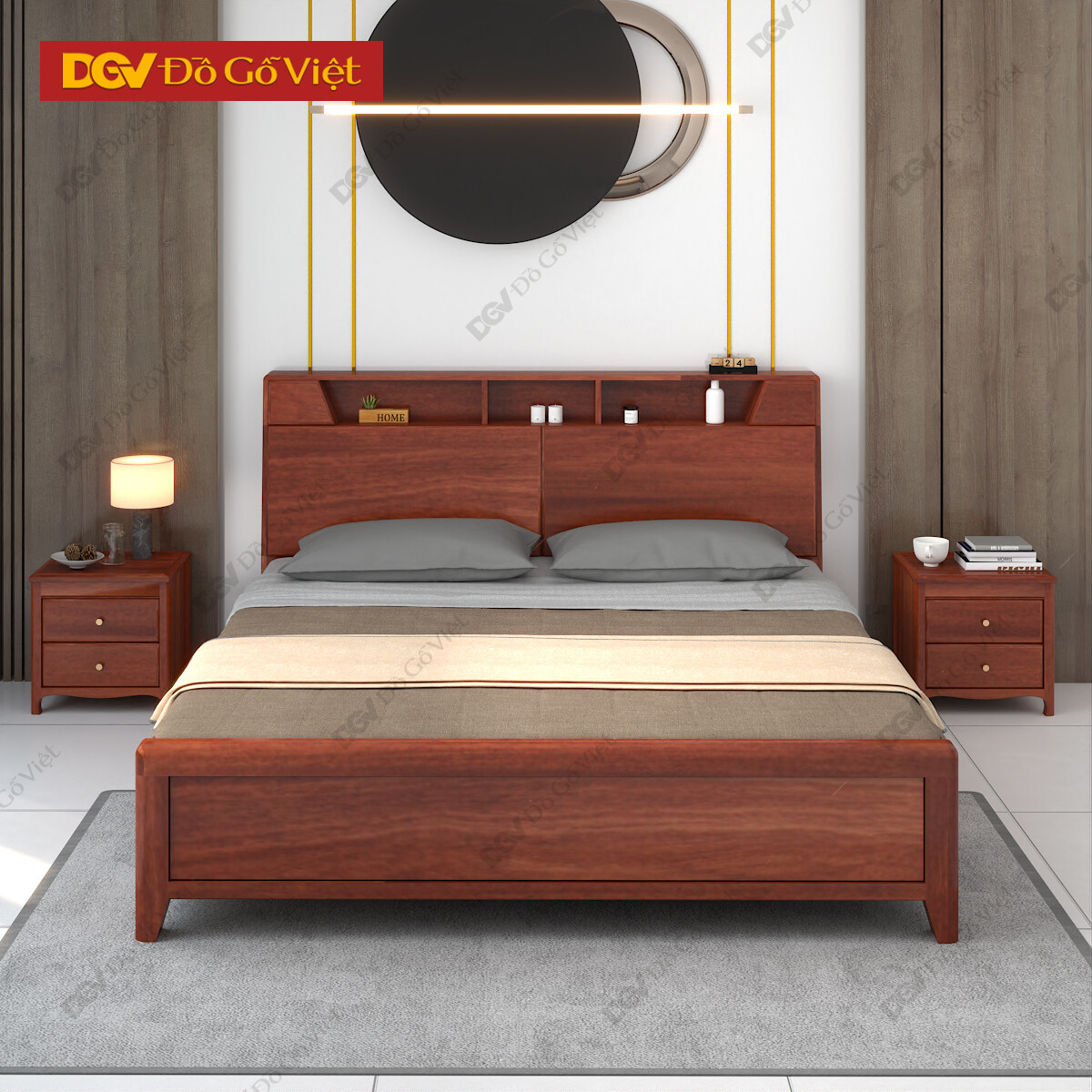Giường Ngủ Gỗ Căm Xe Tự Nhiên Với Kệ Đầu Giường Tiện Ích