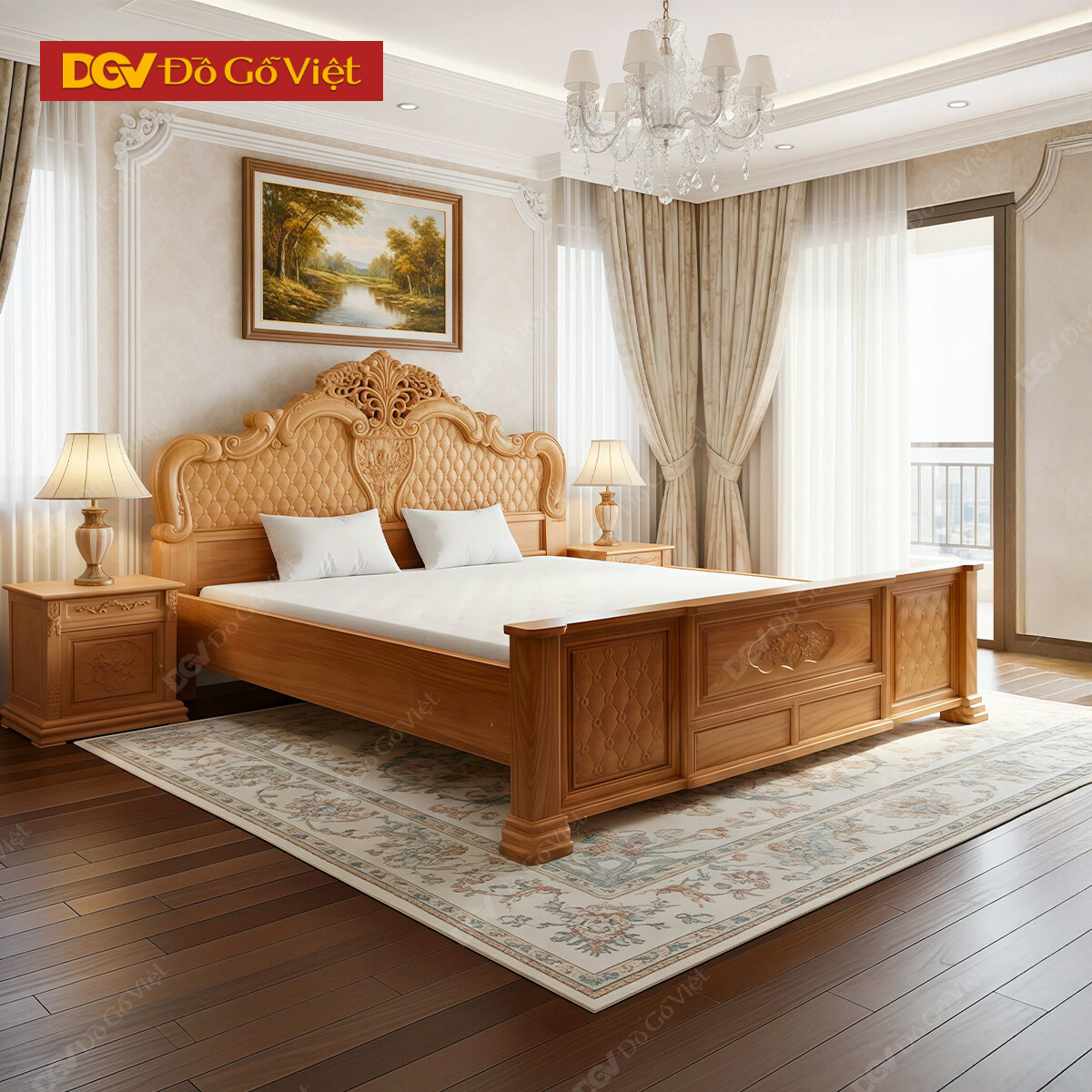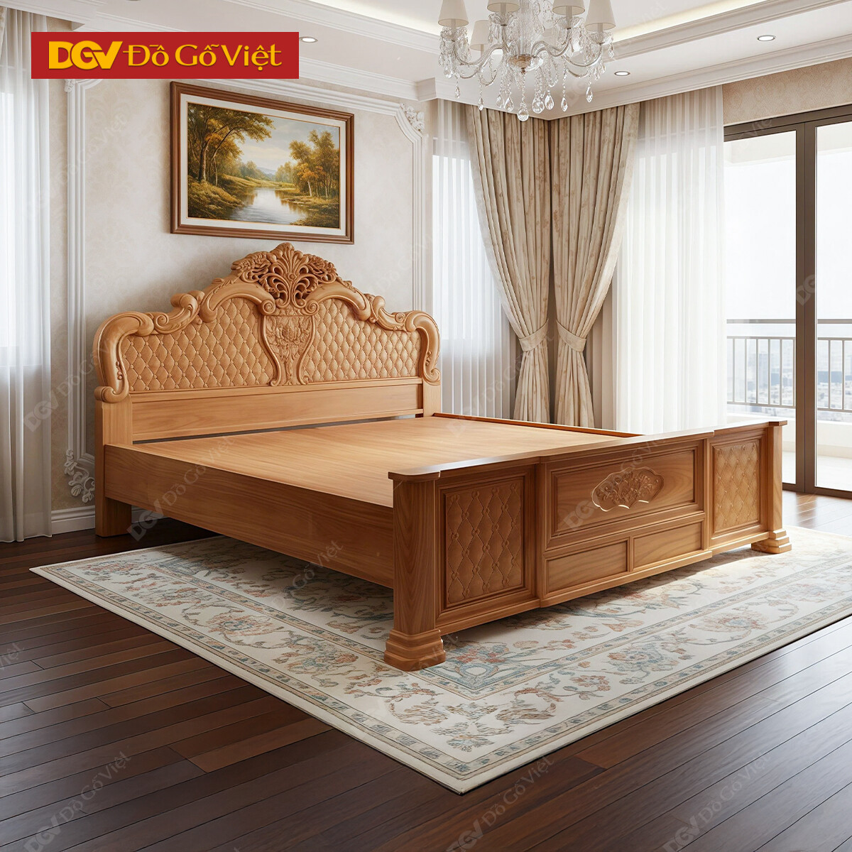 Giường Ngủ Gỗ Gõ Đỏ Dày Chạm Khắc Cổ Điển
