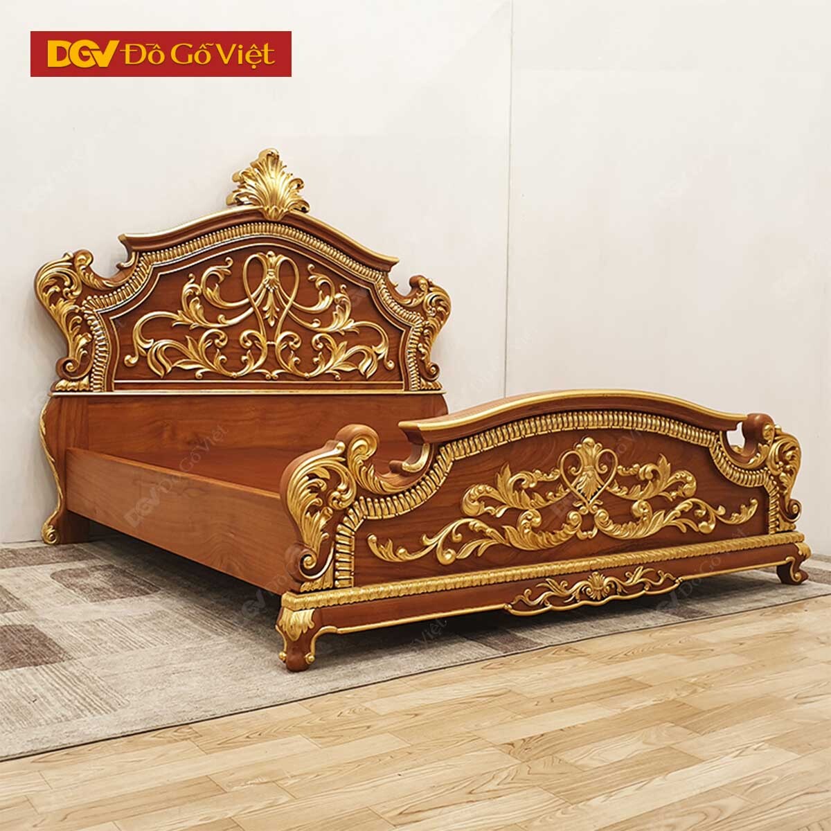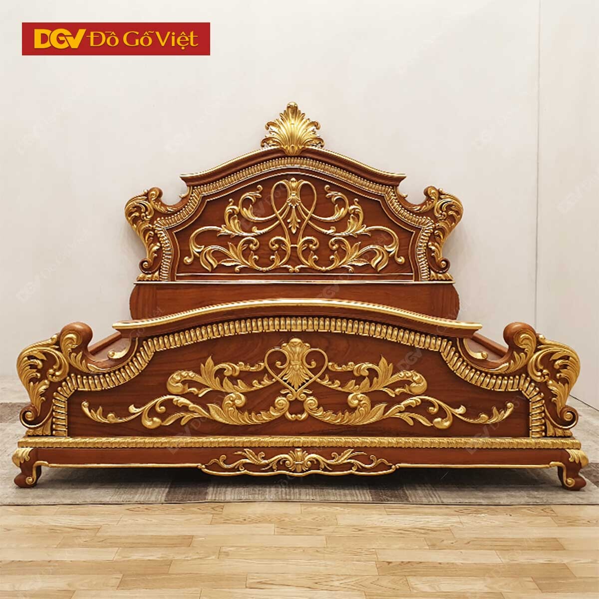 Giường Ngủ Gỗ Gõ Đỏ Chạm Hoa Lá Giác Vàng Cổ Điển Sang Trọng