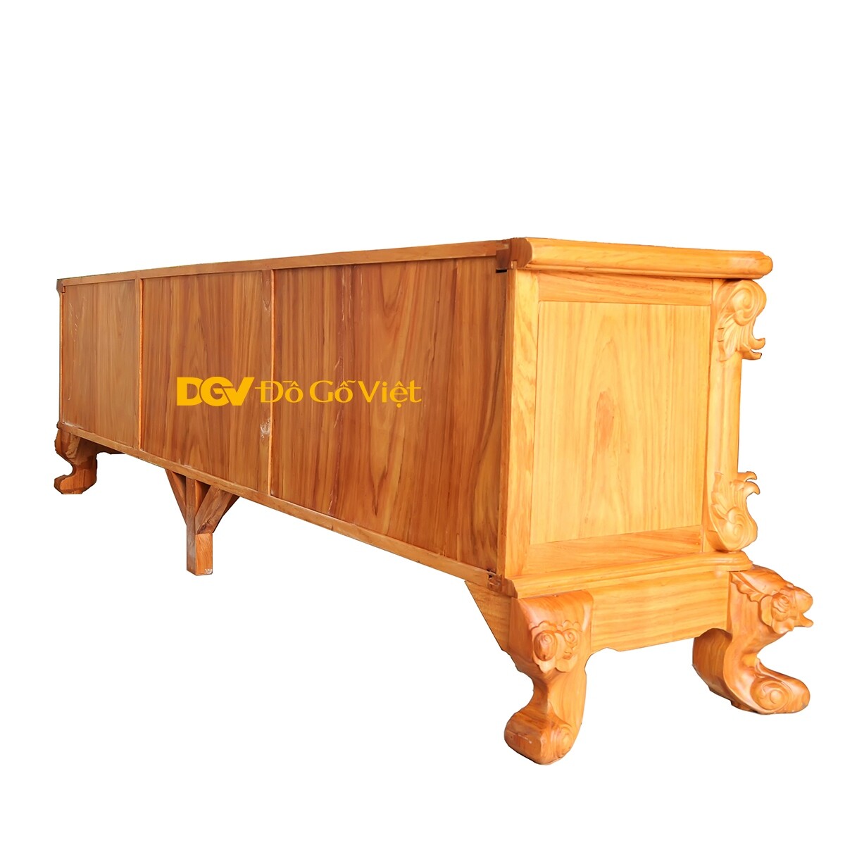 Dù sử dụng phong cách cổ điển nhưng sản phẩm vẫn được chú trọng vào yếu tố thiết thực với nhiều công dụng tích hợp đem lại tiện ích to lớn cho người sử dụng. Ngoài tác dụng chính là trưng bày, giá đỡ tivi, bạn còn có thể để loa tivi, đầu đĩa DVD, lưu giữ các tài liệu, đồ dùng quan trọng hay sách báo.