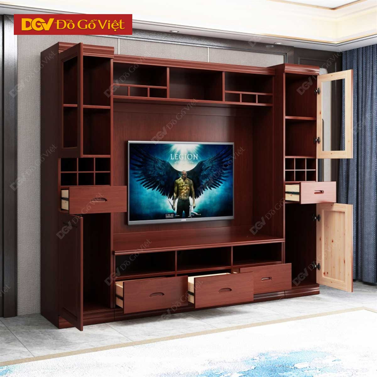 Kệ Tivi Gỗ Sồi Kết Hợp Tủ Kính Trưng Bày Rộng Rãi