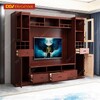 Tủ Trưng Bày Gỗ Veneer Sồi Kết Hợp Kệ Tivi Phòng Khách
