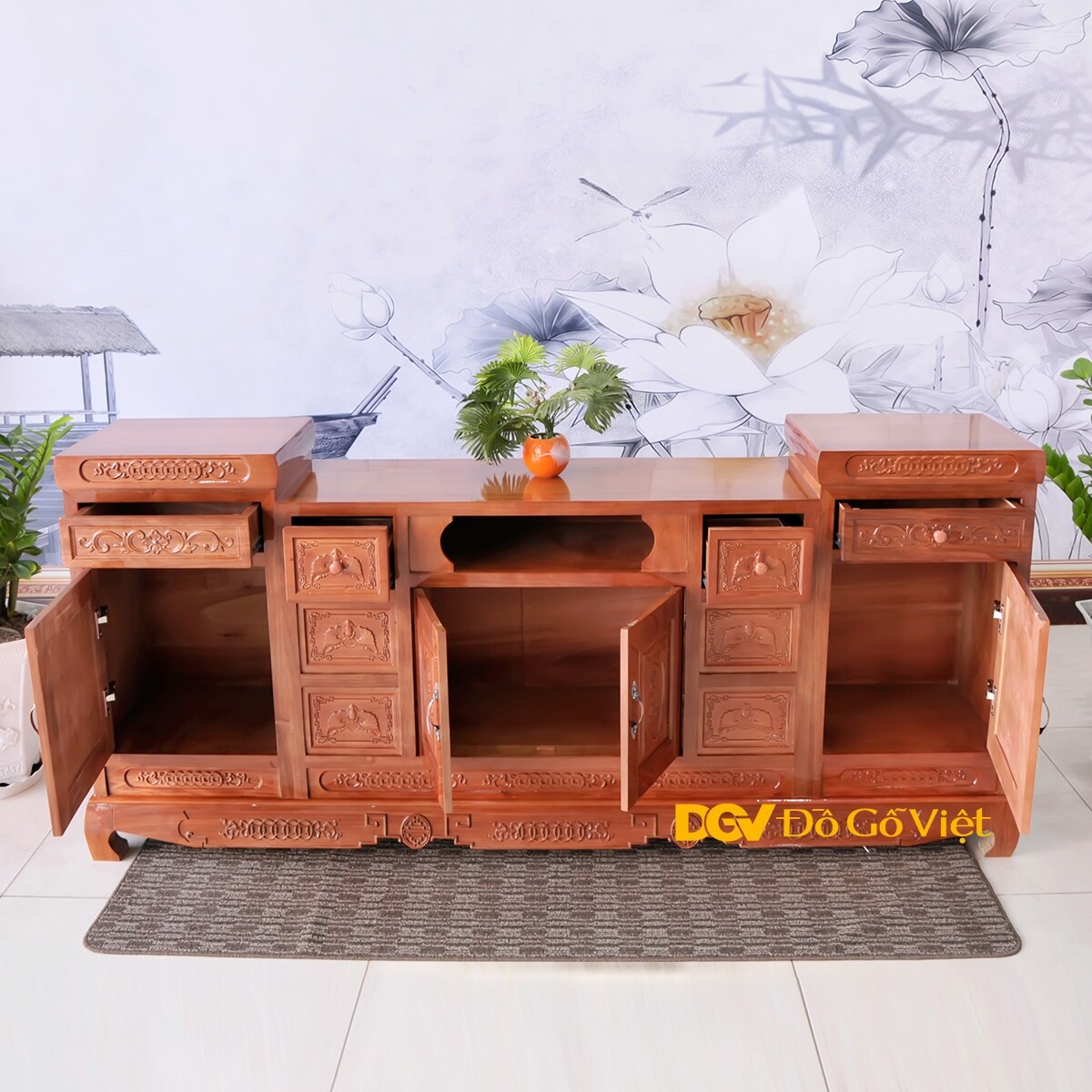 Kệ Tivi Gỗ Xoan Chạm Hoa Văn Cổ Điển Đẹp Giá Rẻ