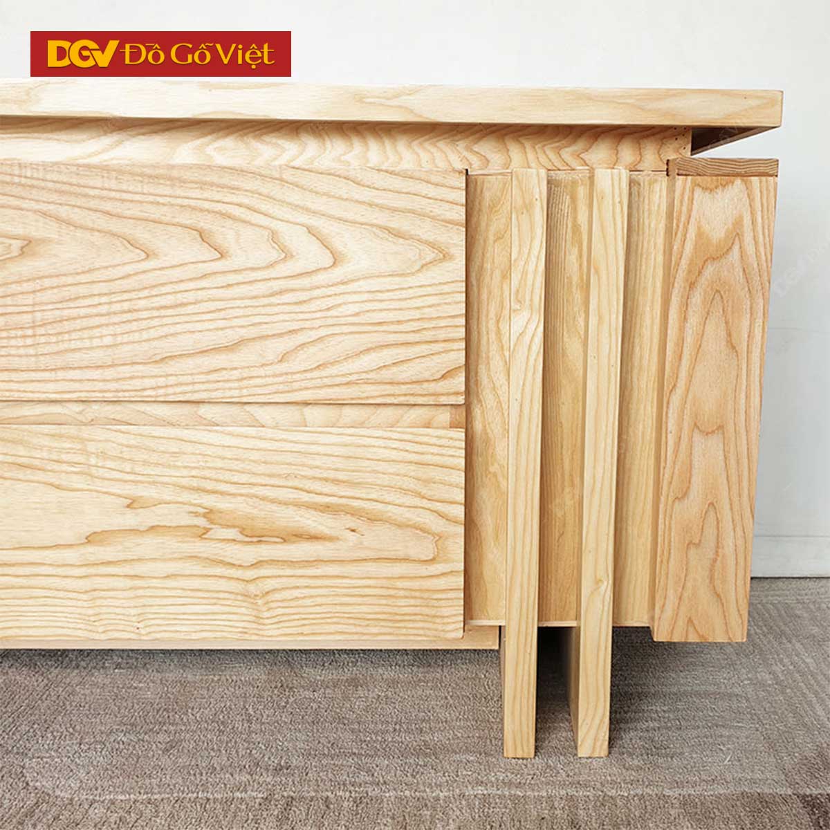 Chân kệ tivi sồi nga làm đơn giản tuy nhiên vẫn đảm bảo được khả năng chịu lực tốt, với phần đáy kệ được gắn thêm một tấm gỗ lớn được làm sát đất, có tác dụng kết nối 2 phần chân trụ lại với nhau. Giúp việc phân chia lực tác động đều hơn, giảm thiểu tải trọng tối đa nhất mà vẫn đảm bảo được tính thẩm mỹ cho thiết kế.