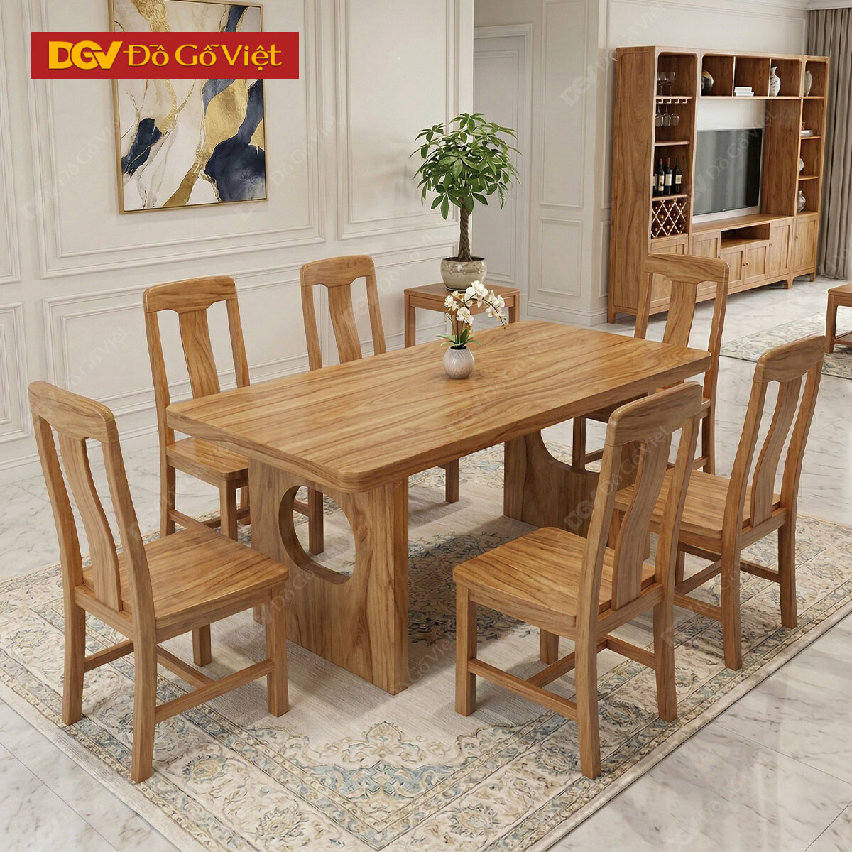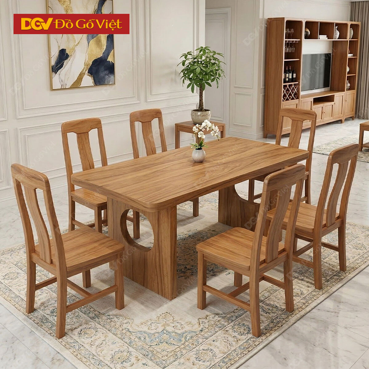 Bàn Ăn Căm Xe Mặt Gõ Chữ Nhật Cong 1m9 8 Ghế