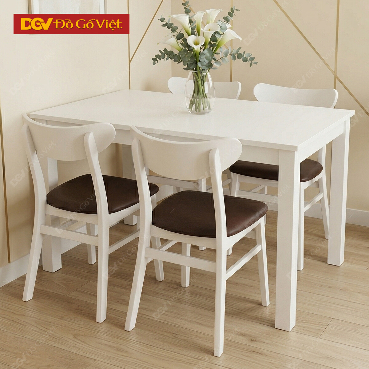 Mẫu Bộ Bàn Ăn 4 Ghế Gỗ Veneer Sồi Phối Ghế Mango Bọc Nệm