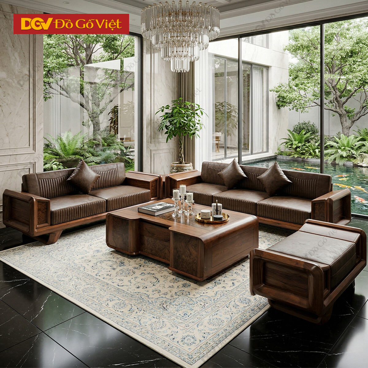 Bộ Sofa Gỗ Óc Chó Phòng Khách Hiện Đại Bo Góc Tinh Tế