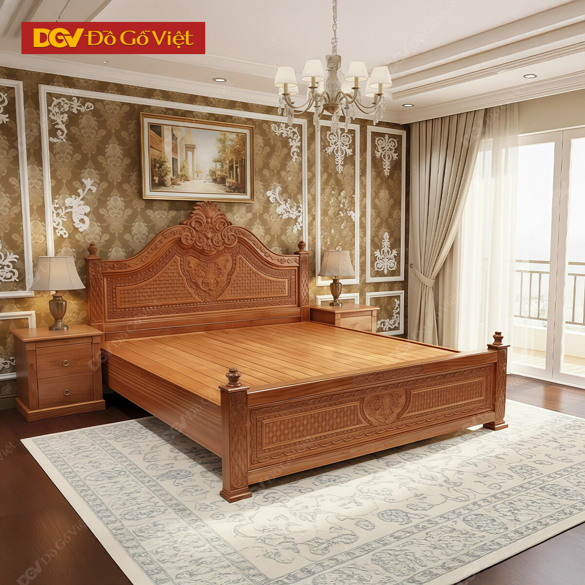 Mẫu Giường Xoan Đào Cổ Điển Chạm Lá Tây Hoàng Gia