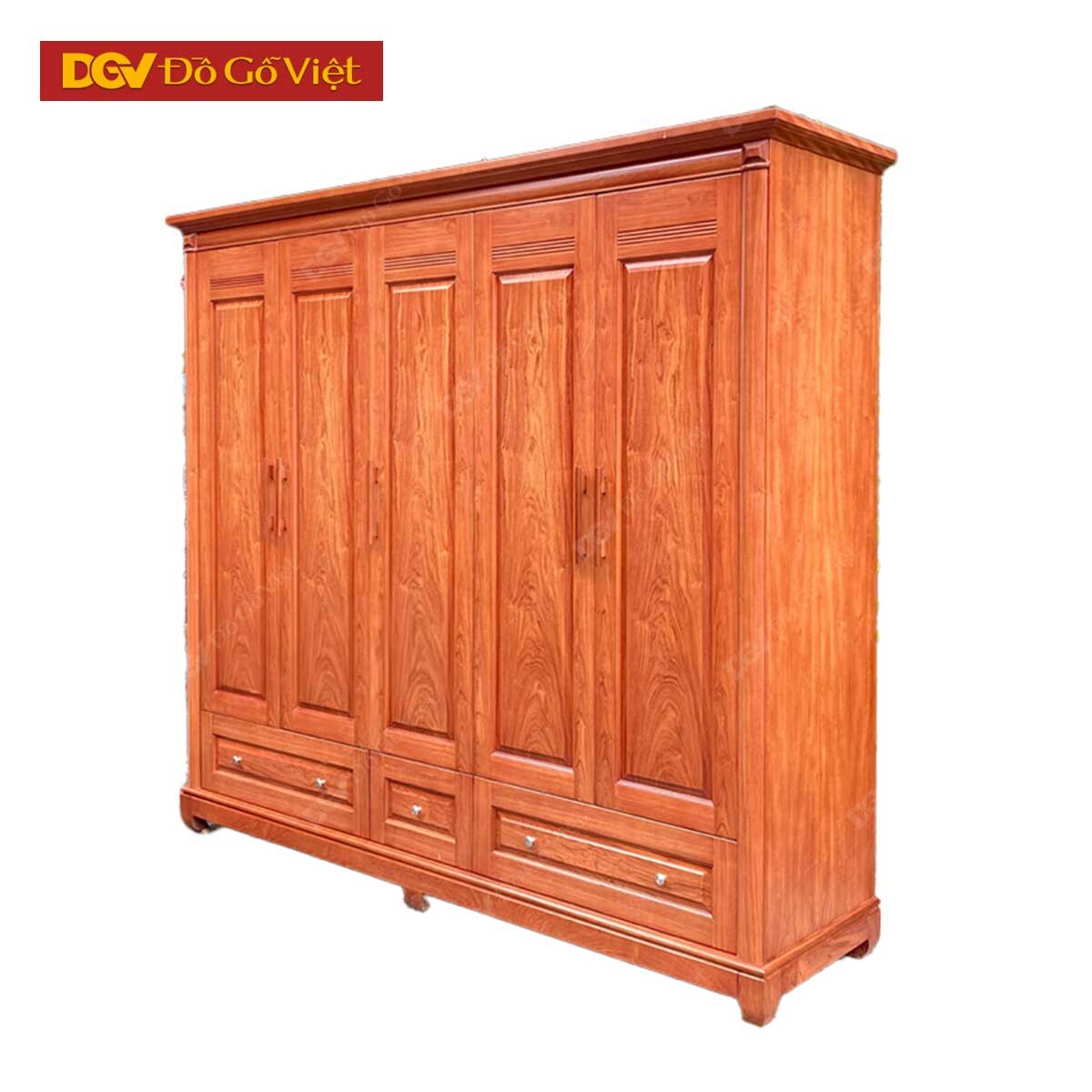 Mẫu Tủ Áo Gỗ Tự Nhiên 5 Cánh Vân Hương Đá Đẹp Sang Trọng