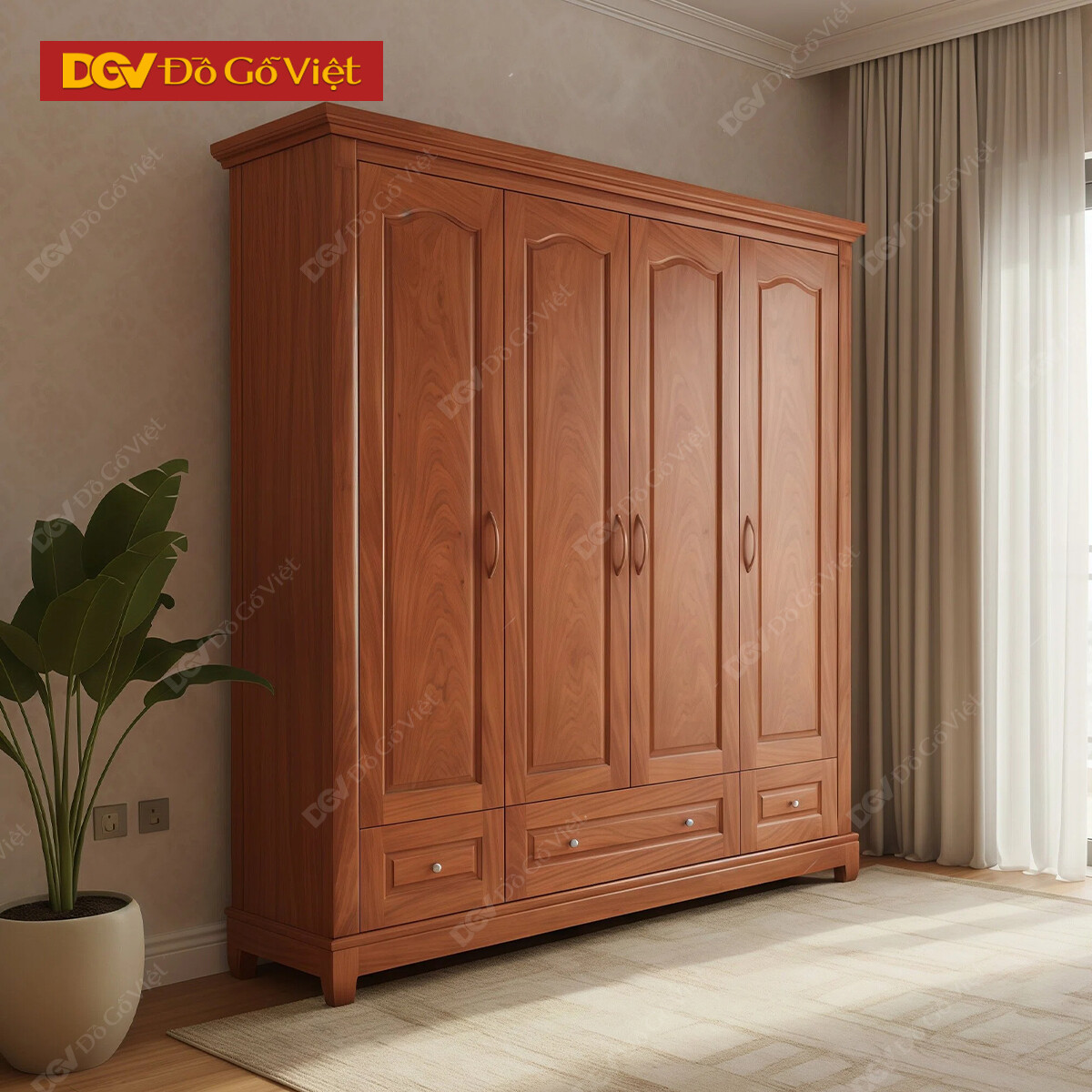 Tủ Quần Áo 4 Cánh Gỗ Veneer Hương Đá Pano Cong Đẹp Bền