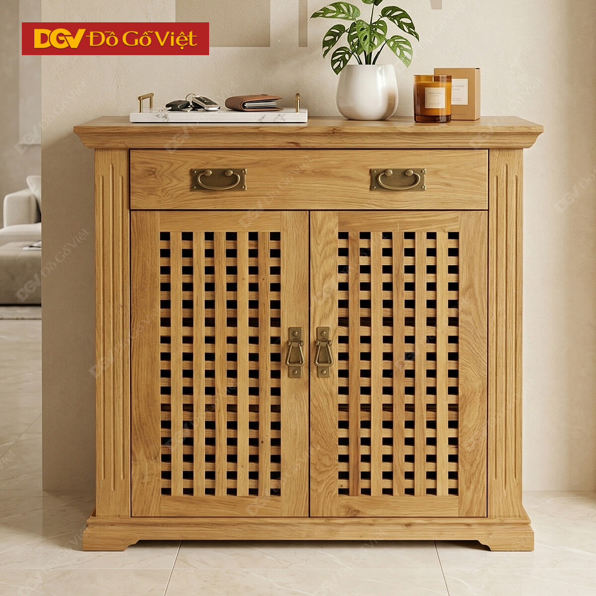 Mẫu Tủ Giày Đẹp Caro Gỗ Sồi 0,8 x 1m