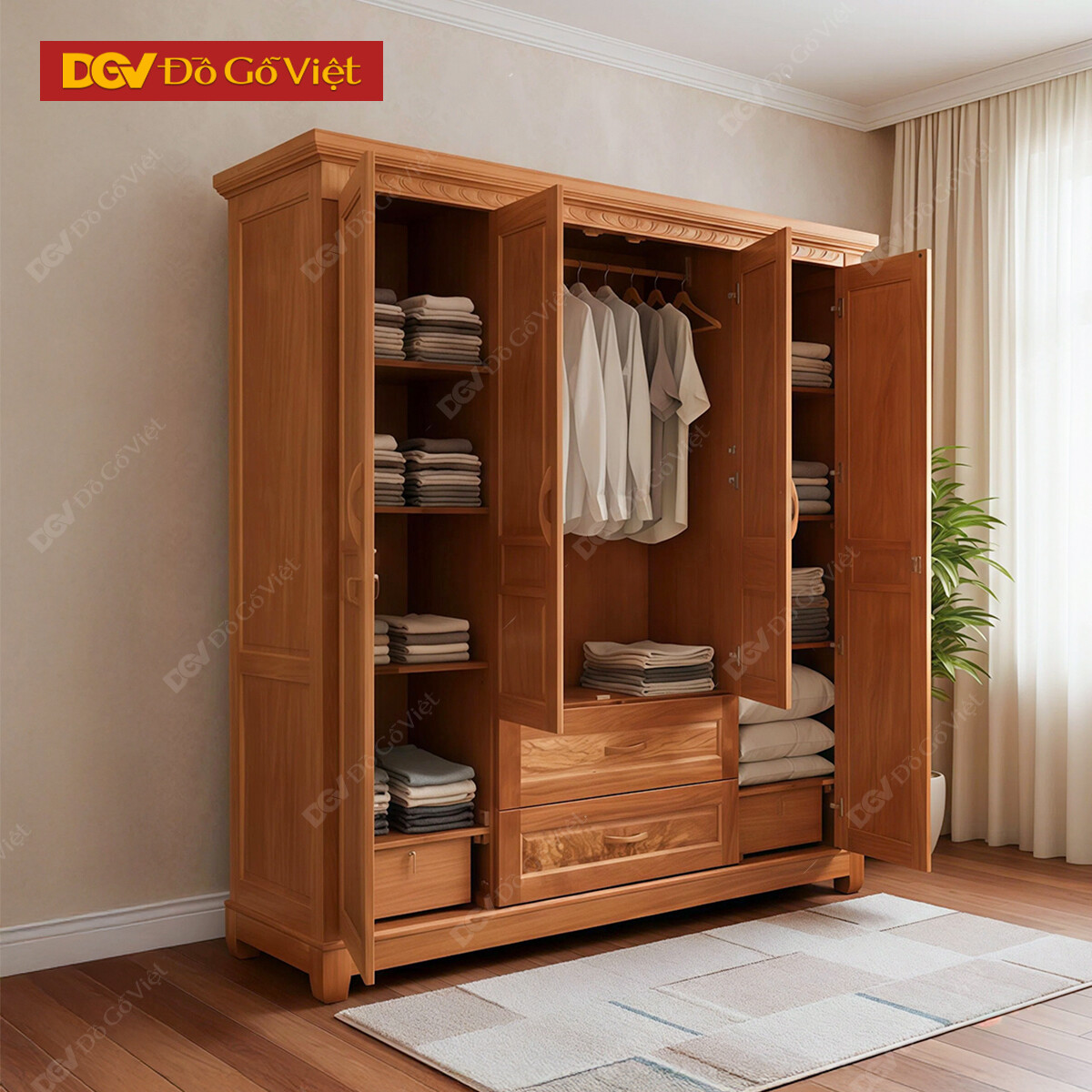 Tủ Áo Gỗ Đinh Hương 4 Cánh Đẹp Giá Rẻ Cho Gia Đình