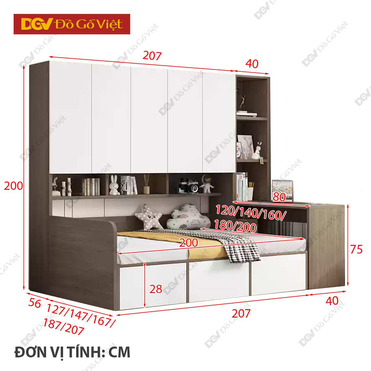 Mẫu Tủ Liền Giường Có Hộc Kéo Thiết Kế Đa Ngăn Tiện Dụng