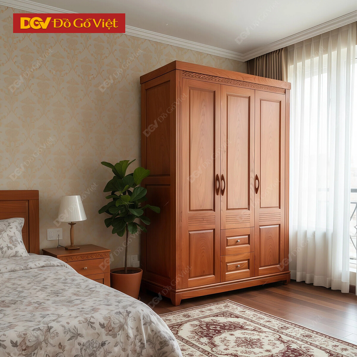 Mẫu Tủ Quần Áo Gỗ Tự Nhiên Chân Cao Cánh Trơn Vân Mộc Đẹp