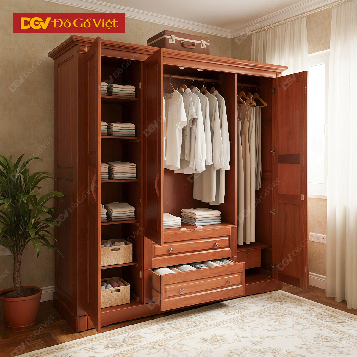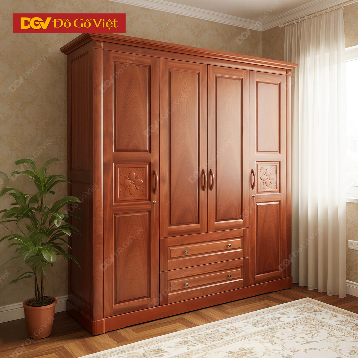 Tủ Đựng Quần Áo Gỗ Xoan Đào Lá 4 Cánh Hiện Đại Đẹp Giá...