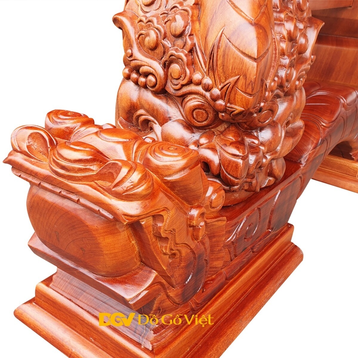 • Trọn bộ sản phẩm được chạm trổ tinh xảo với hoa văn rồng cuộn đẳng cấp, từng nét hoa văn chạm nổi trên nền gỗ tạo nên sự chân thực và sống động như thật đầy hấp dẫn. Từng đường vảy rồng, vuốt rồng, nanh rồng hay những đường hoa văn trang trí đều được trau chuốt tỉ mỉ với độ hoàn thiện cao nhất để đạt tính thẩm mỹ tốt nhất cho người xem.