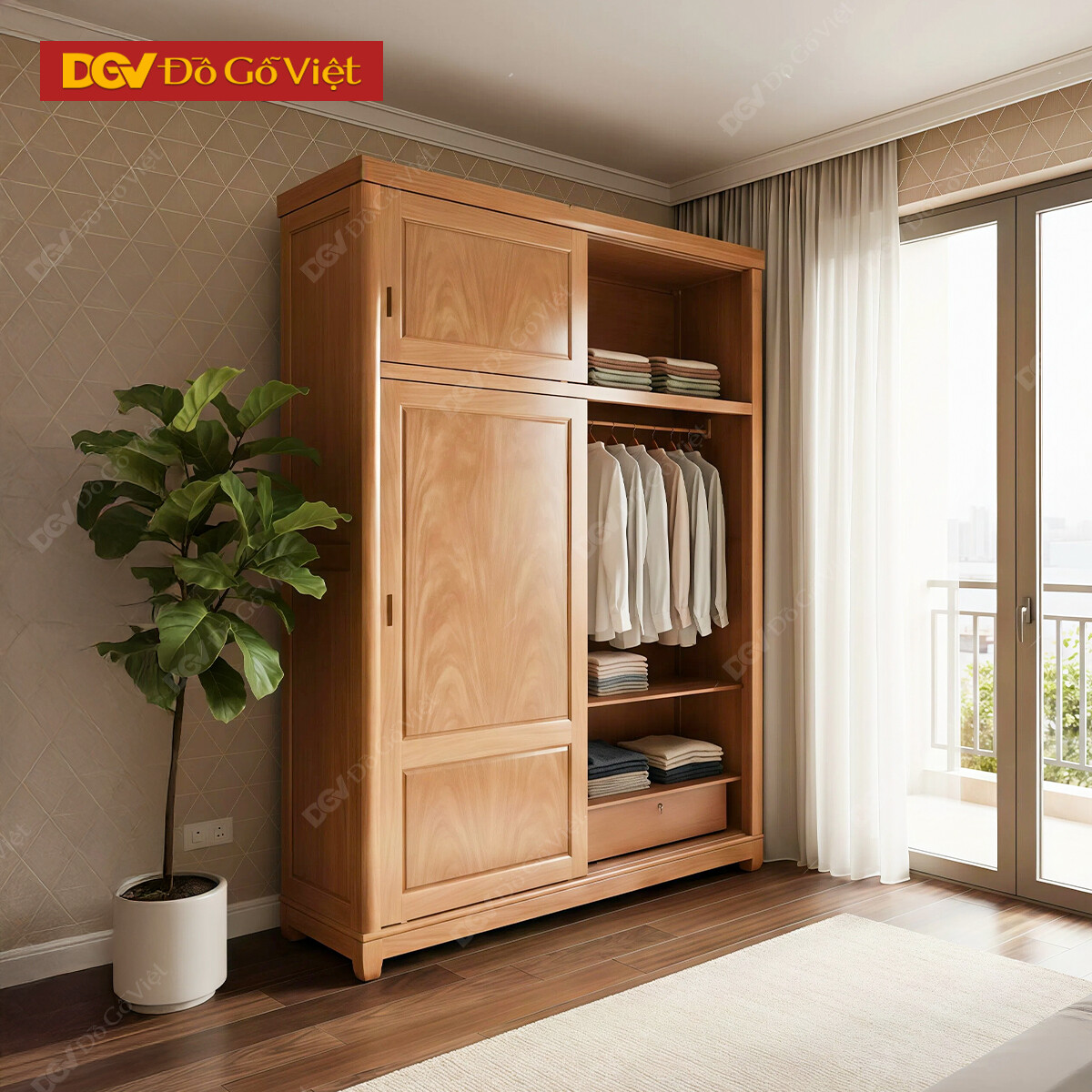 Tủ Áo 2 Cánh Lùa Bằng Gỗ Có Ngăn Xếp Đồ Tủ Trên Tiện Lợi